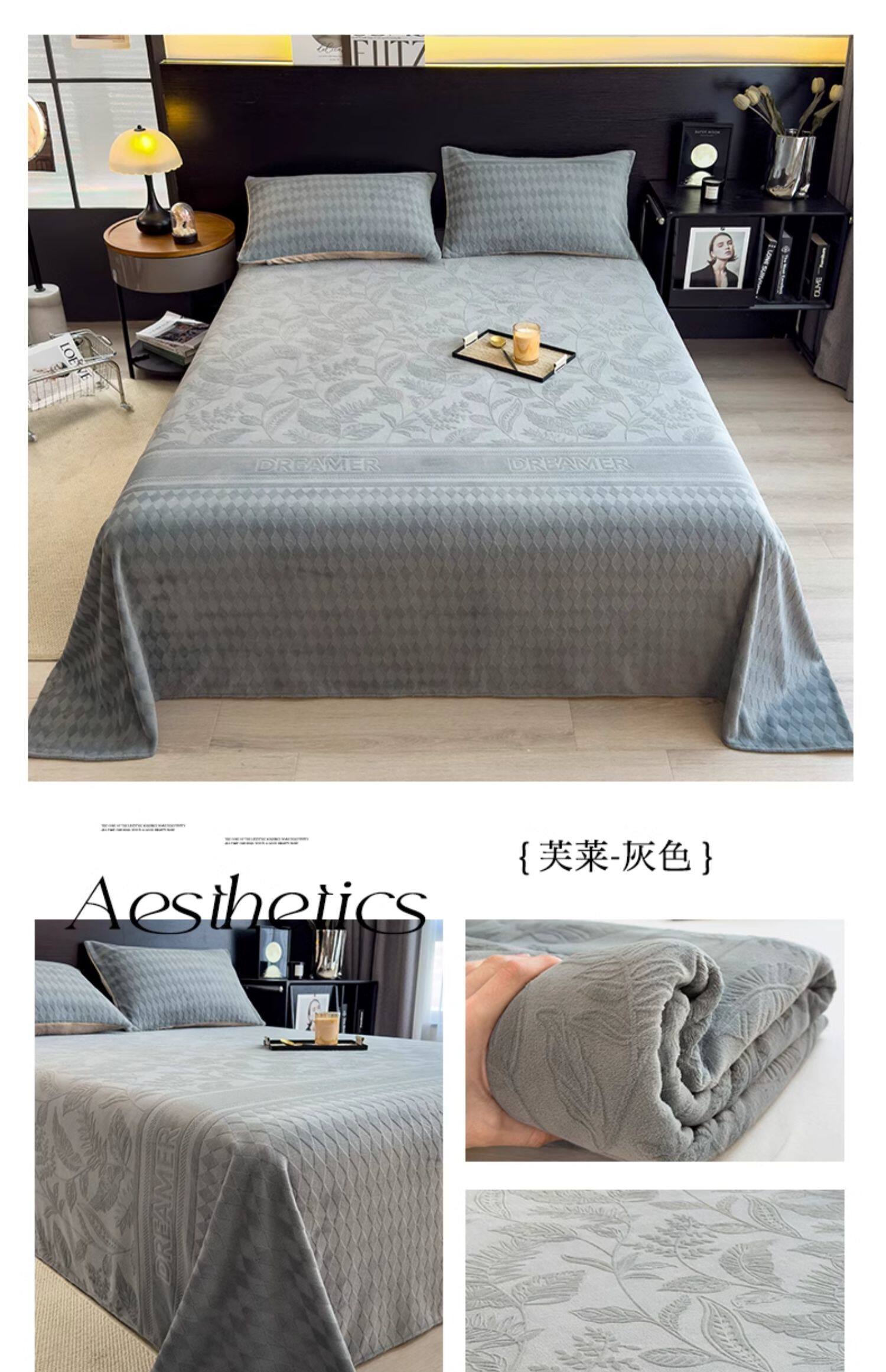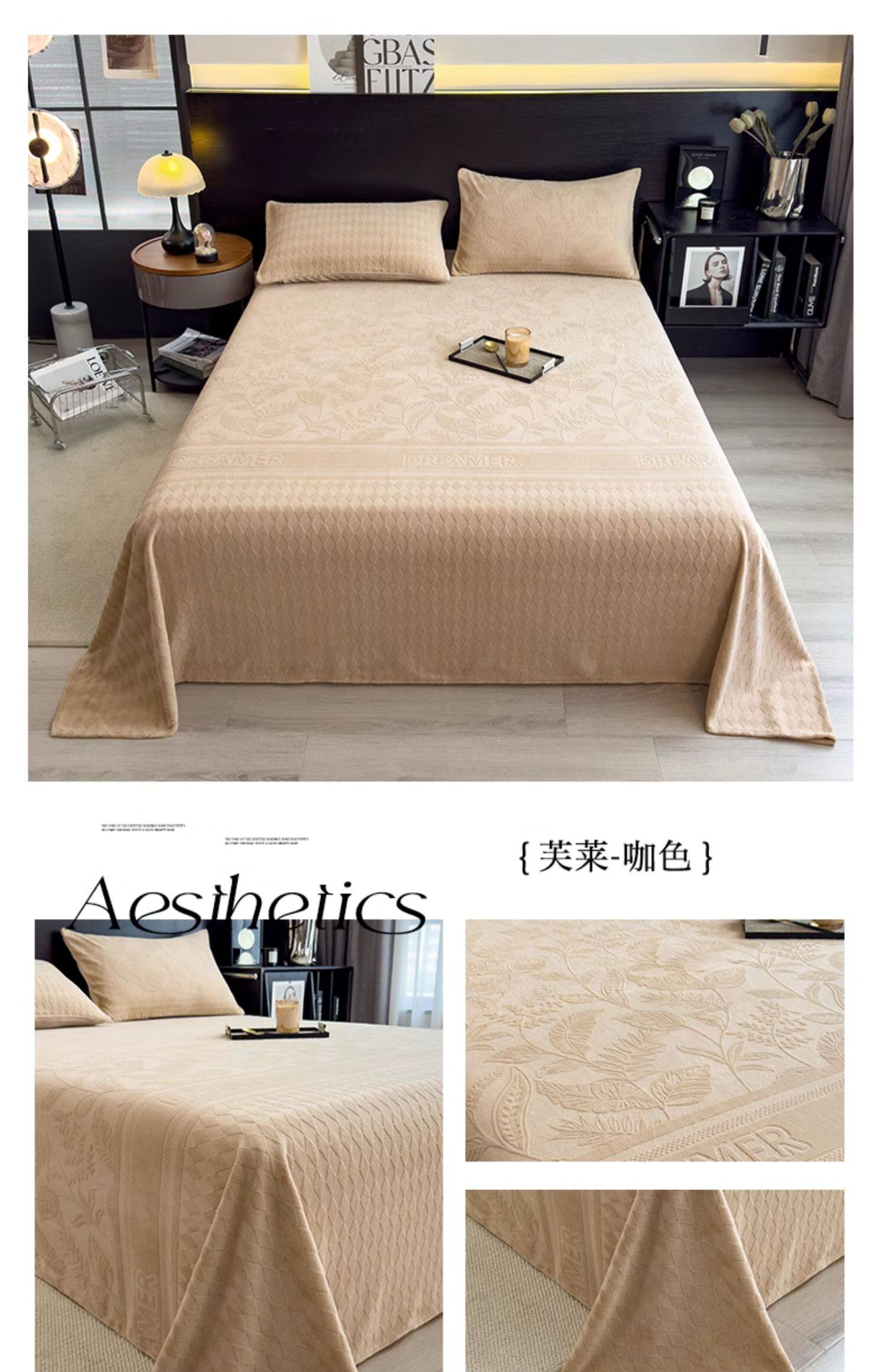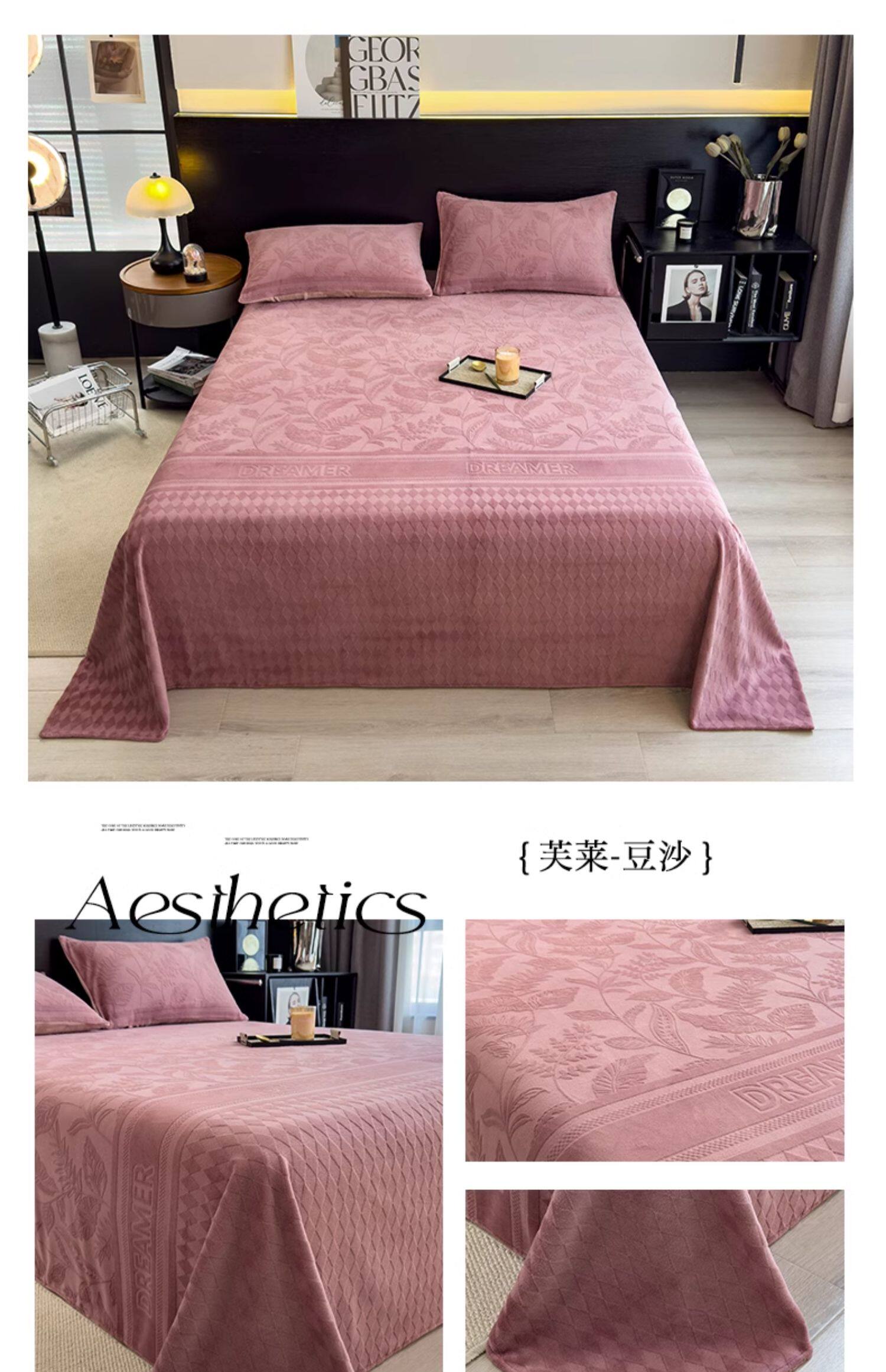 无印良品冬季加绒牛奶绒床单单件宿舍加厚珊瑚法兰绒被单人三件套