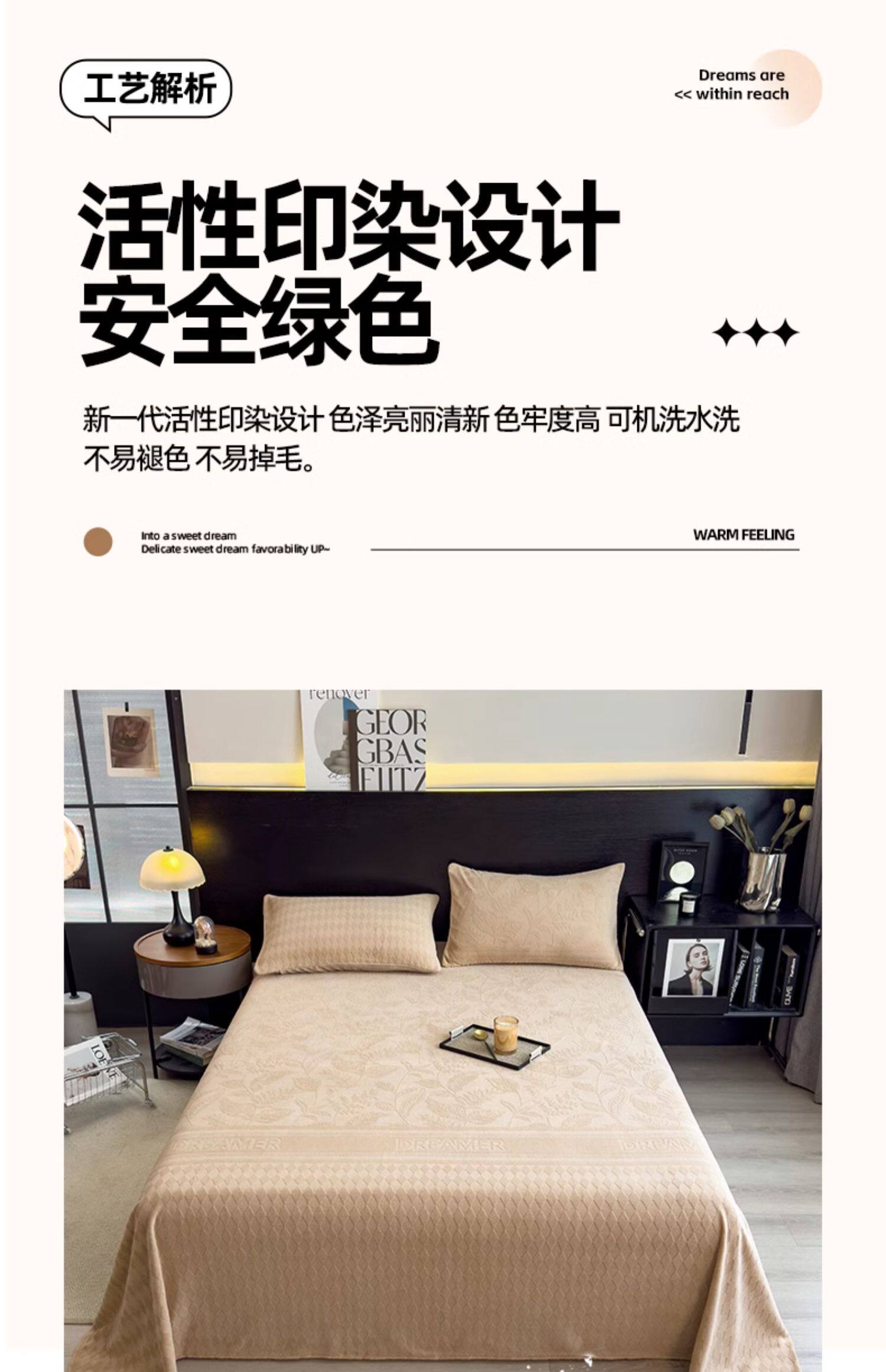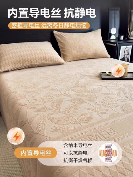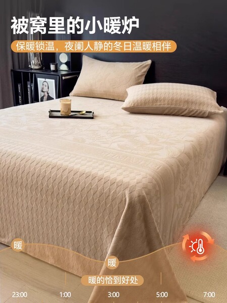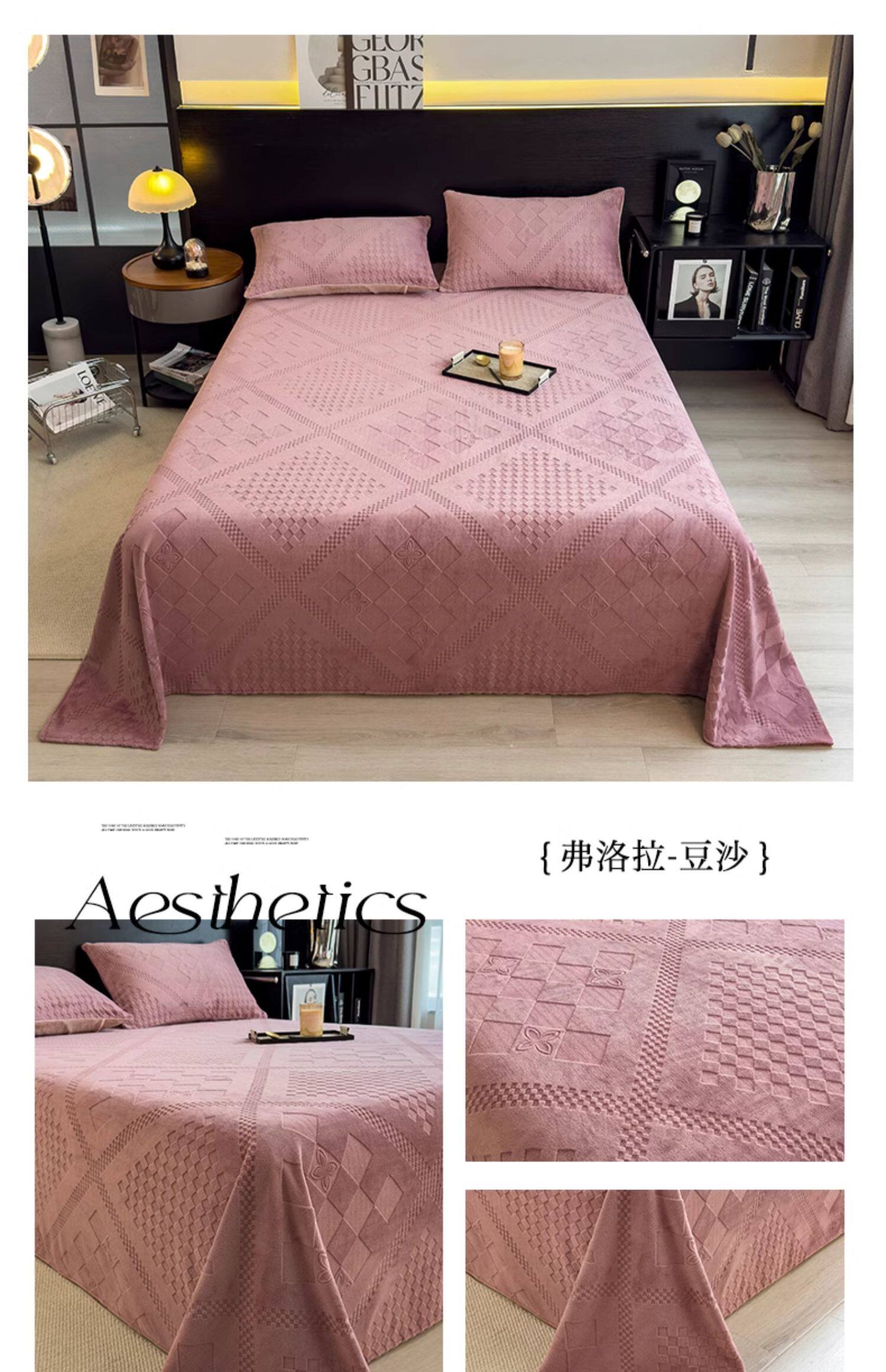 无印良品冬季加绒牛奶绒床单单件宿舍加厚珊瑚法兰绒被单人三件套