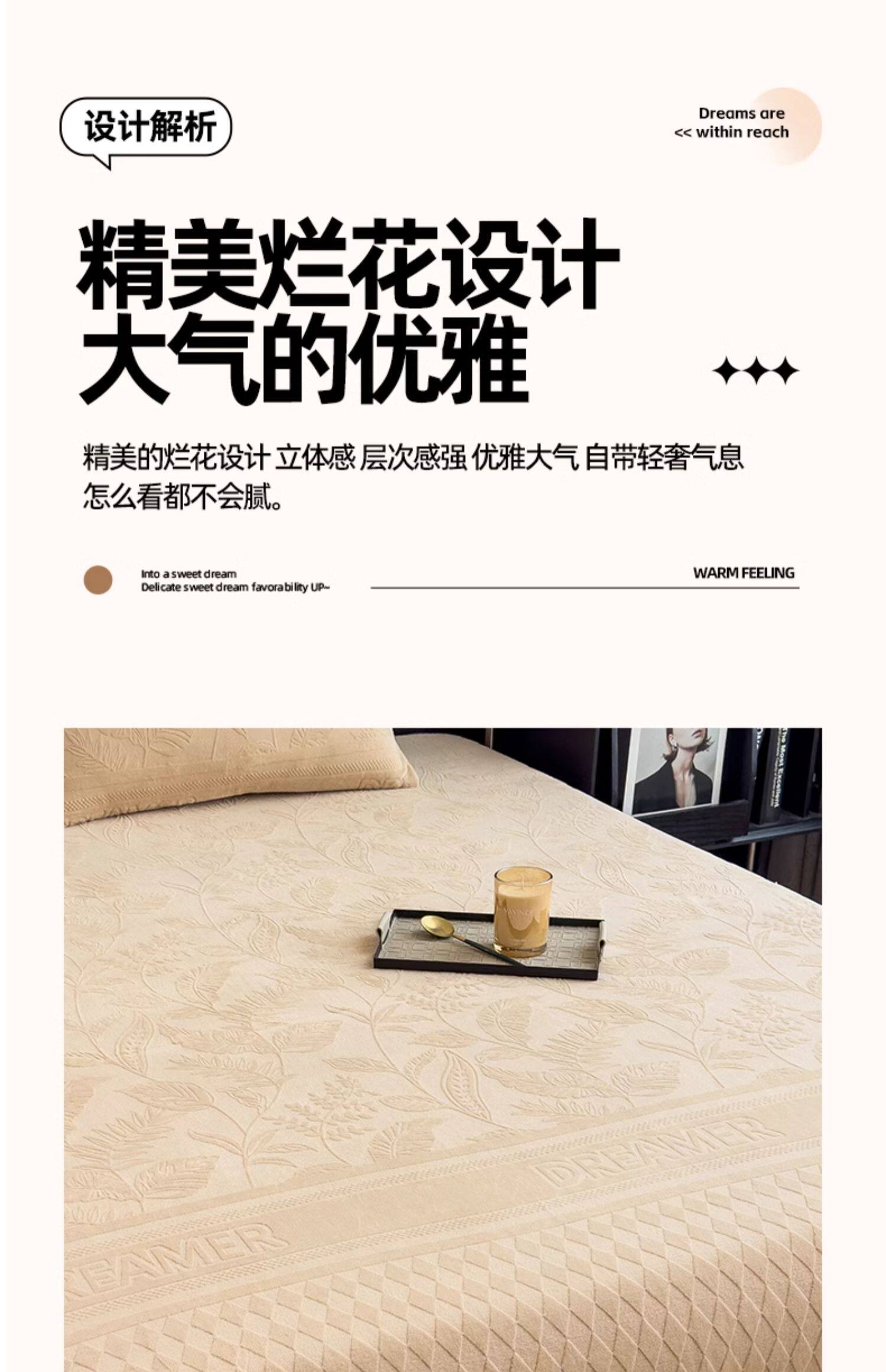 芙莱-咖色 【加厚牛奶绒面料 精美雕花工艺