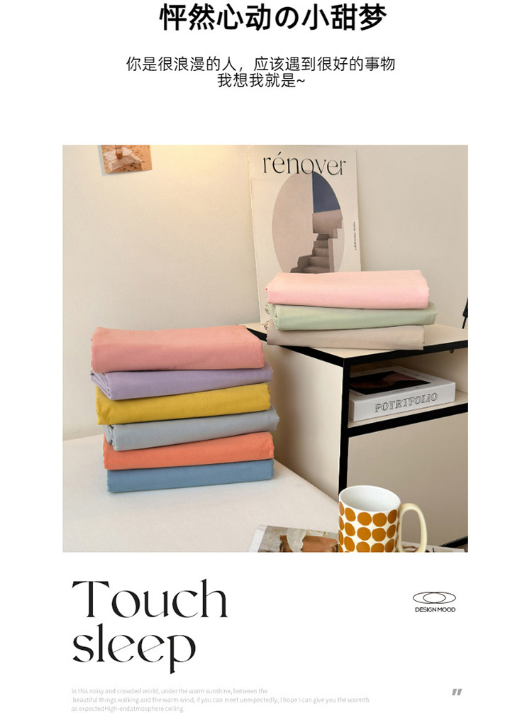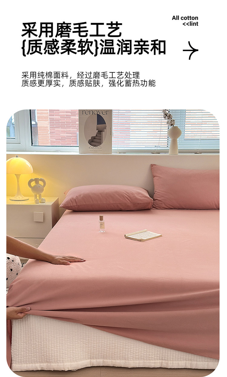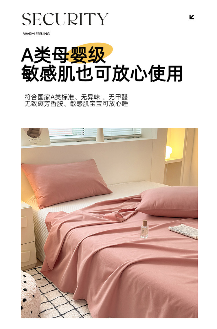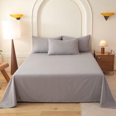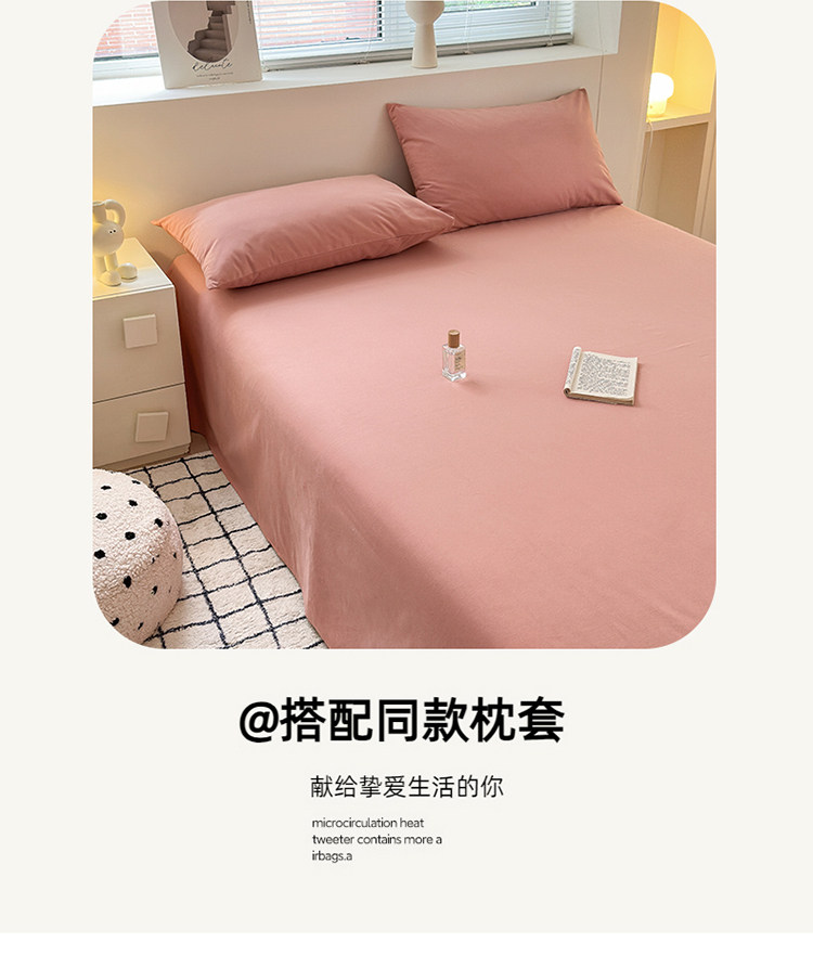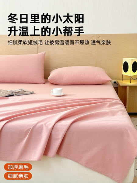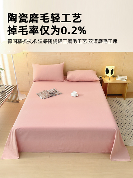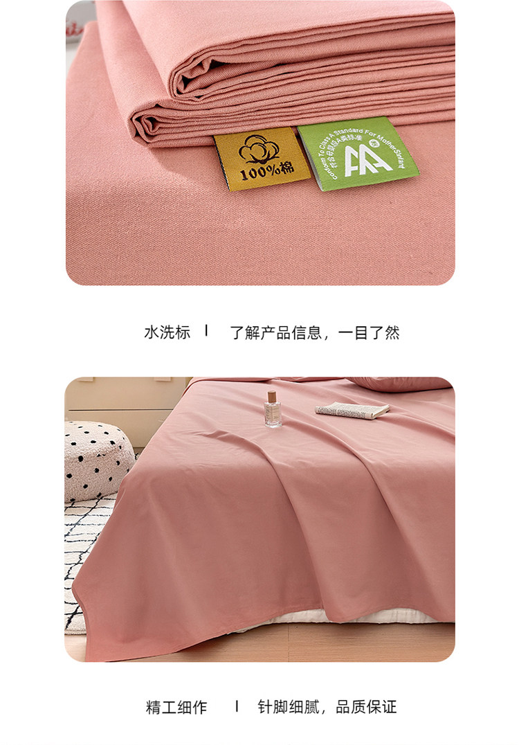 无印良品A类纯棉磨毛床单单件纯色加厚单人100全棉被单枕套三件套