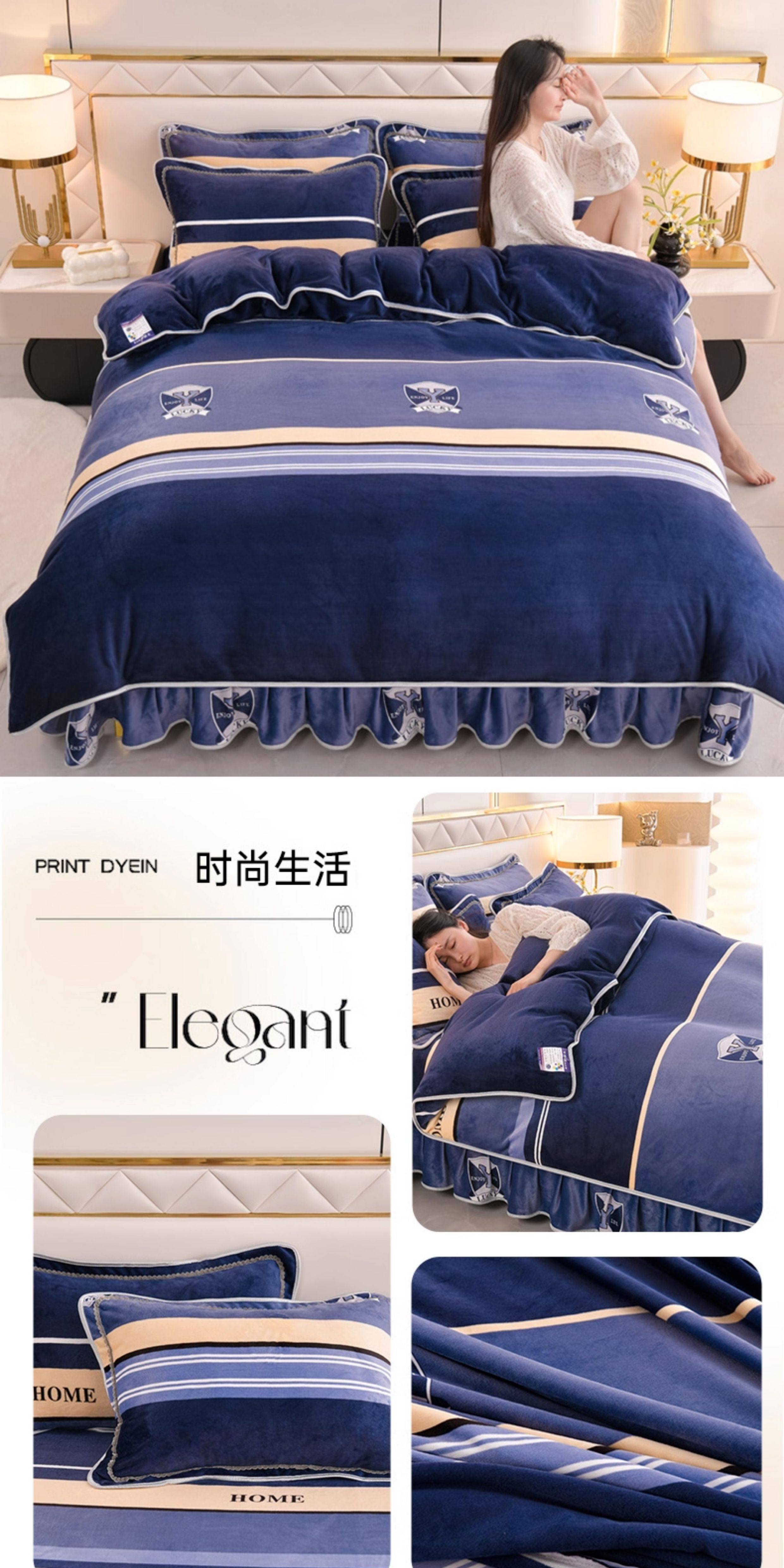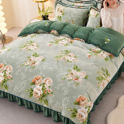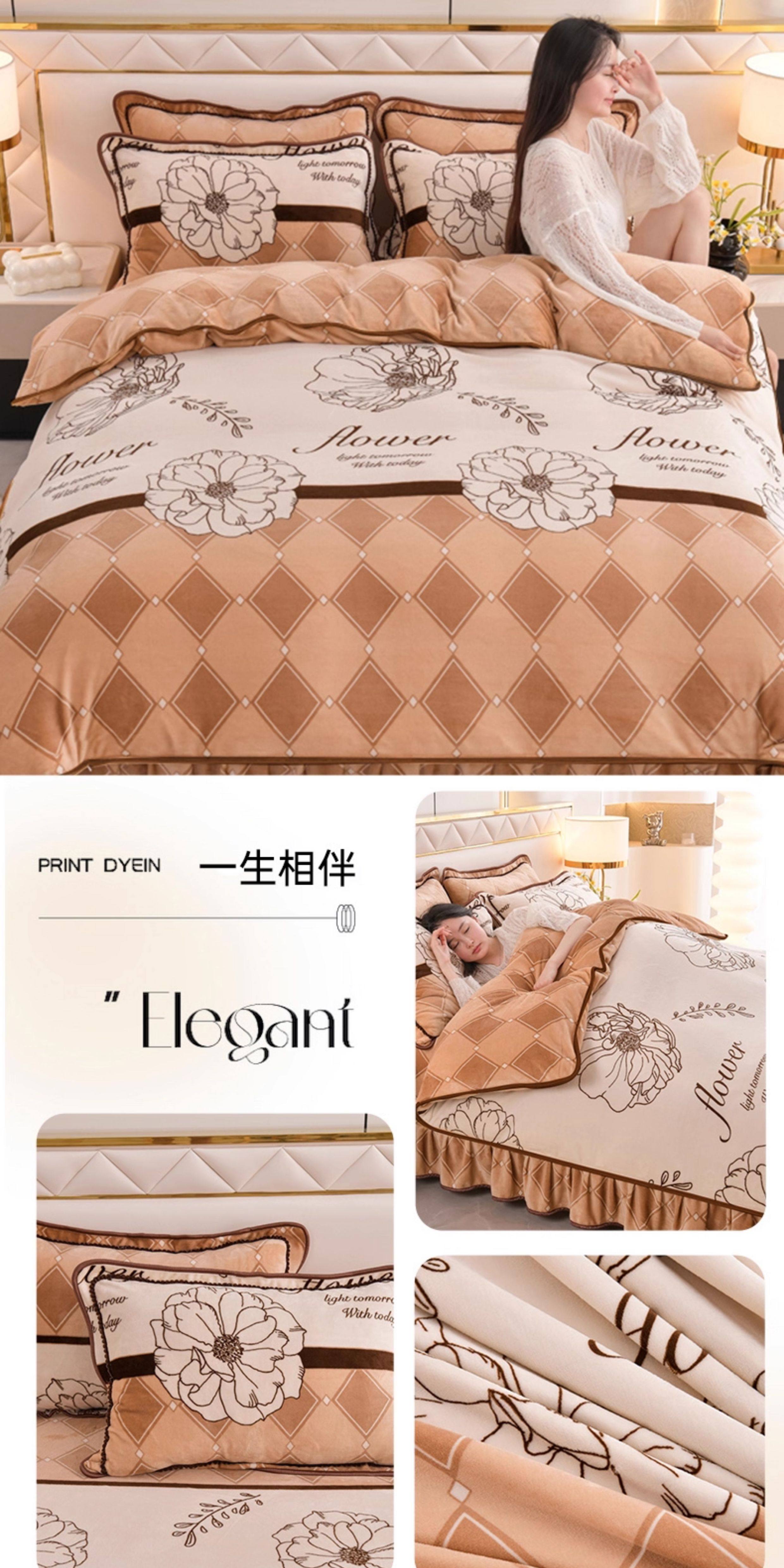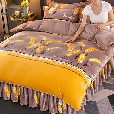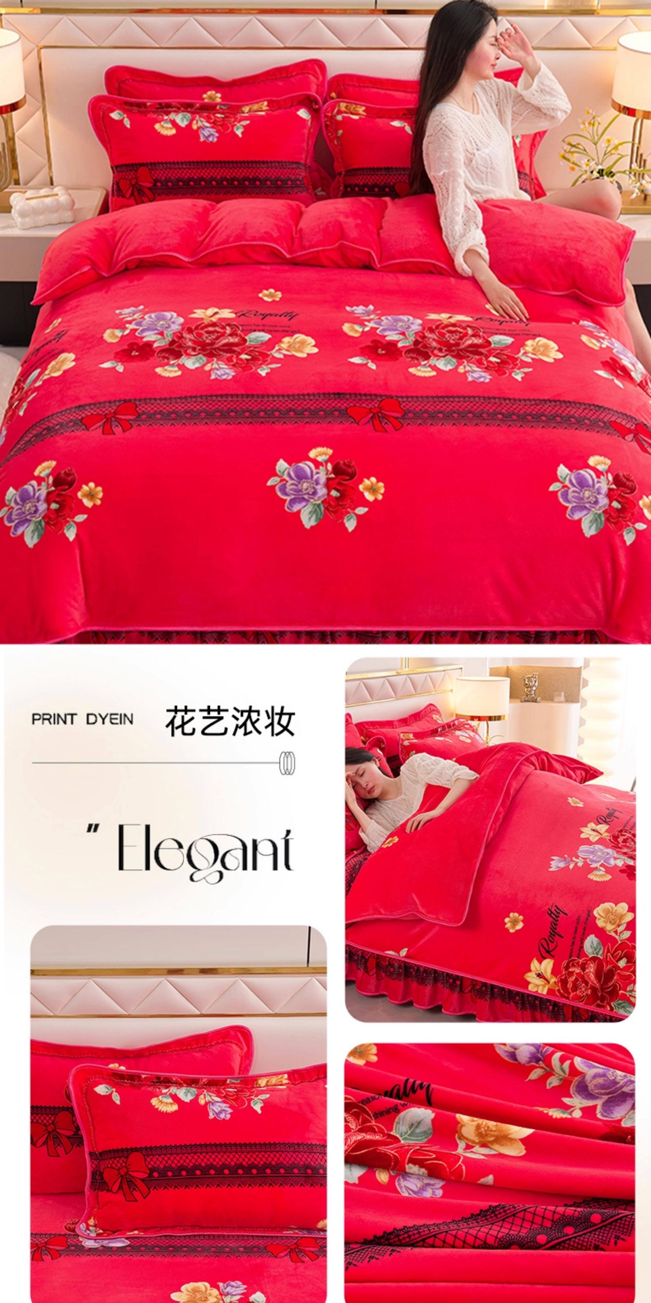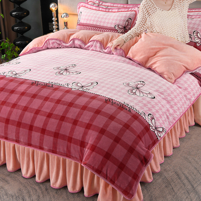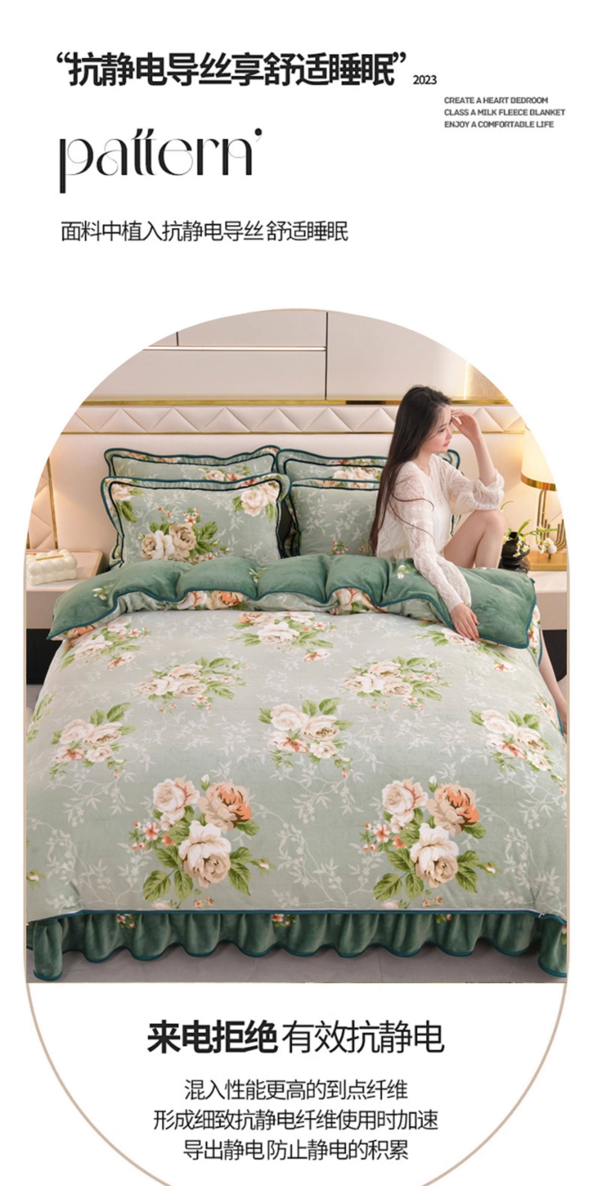 加绒牛奶绒四件套双面加厚珊瑚绒被套法兰绒床单床裙冬季床上用品
