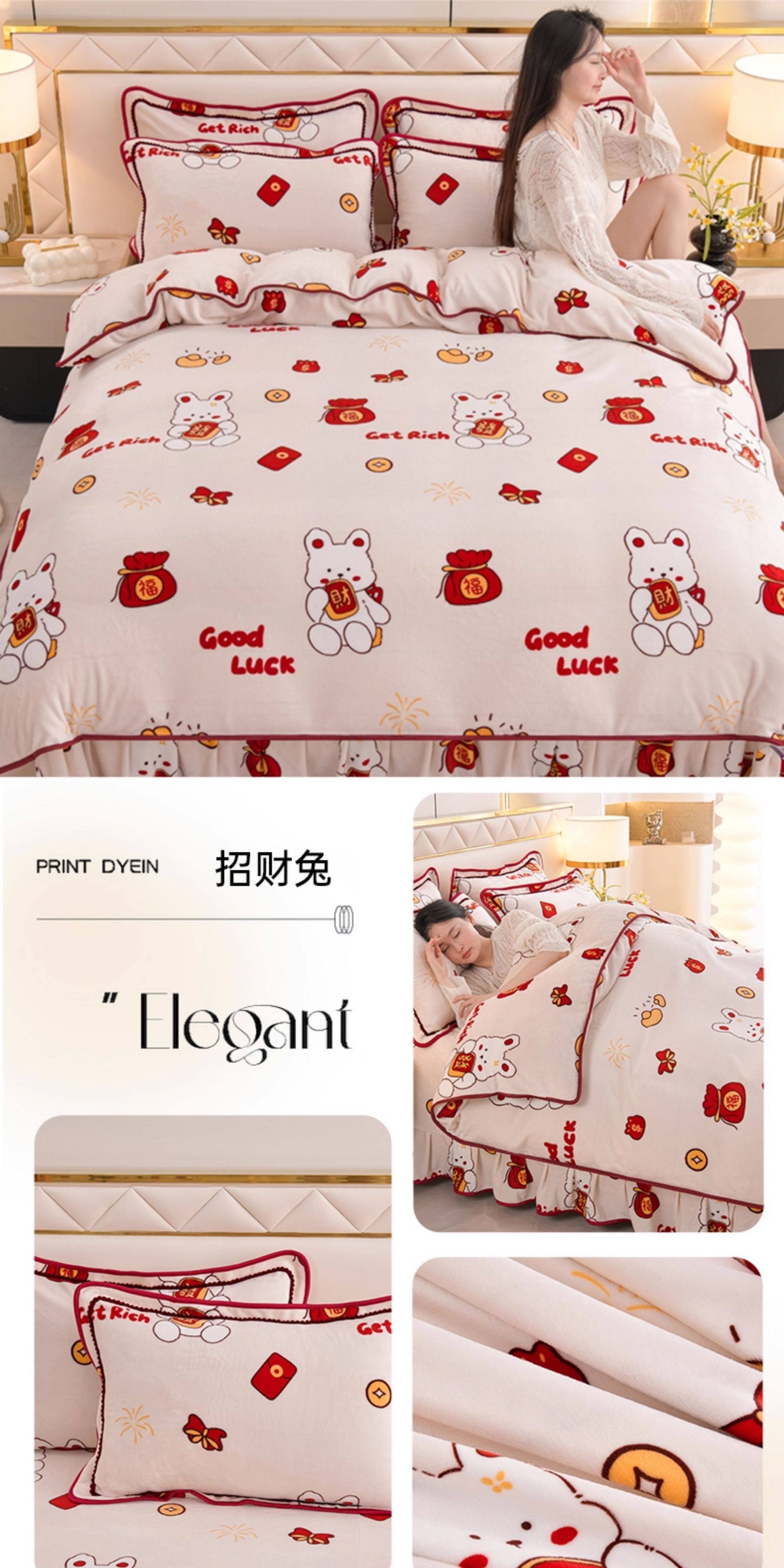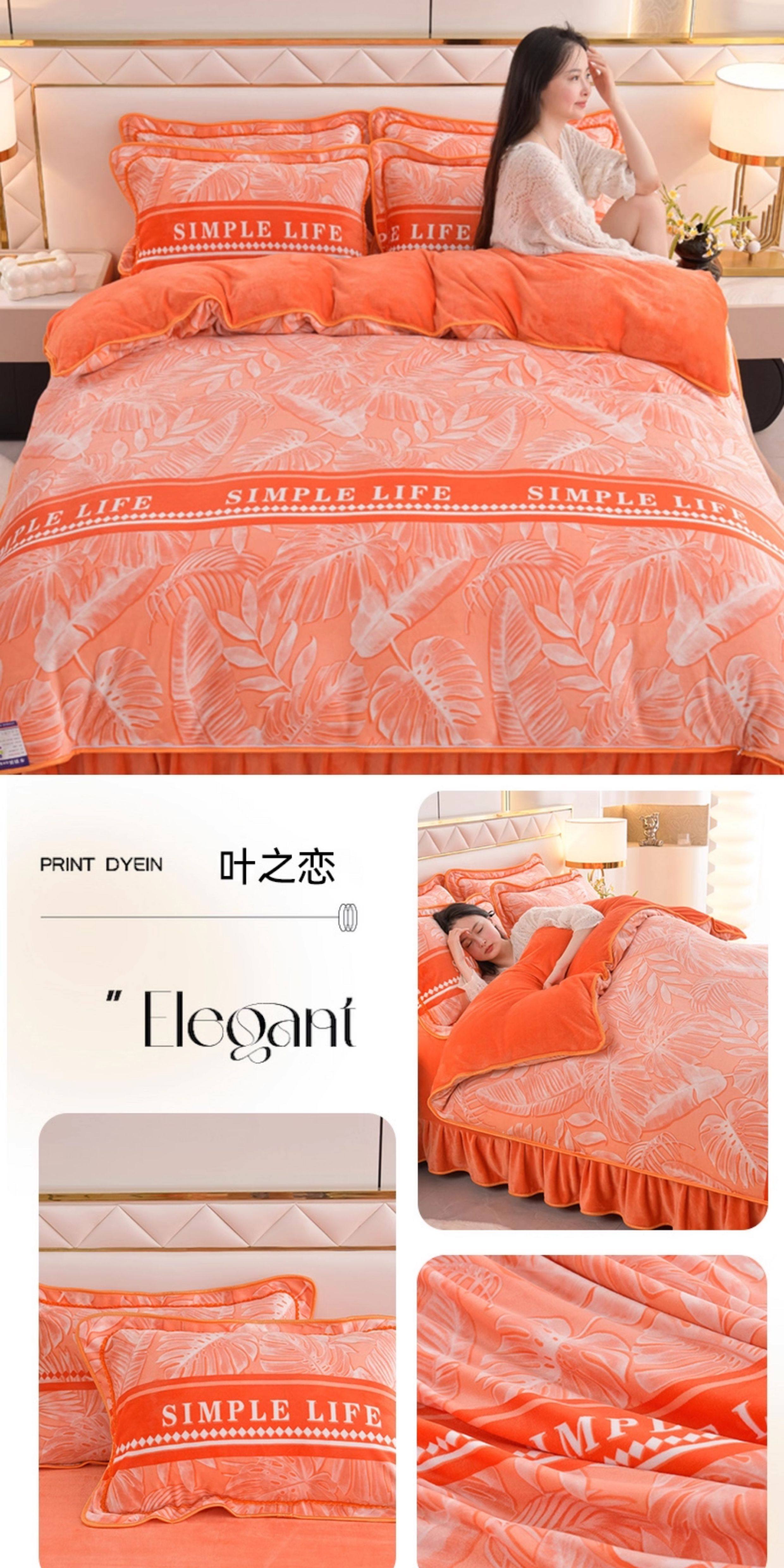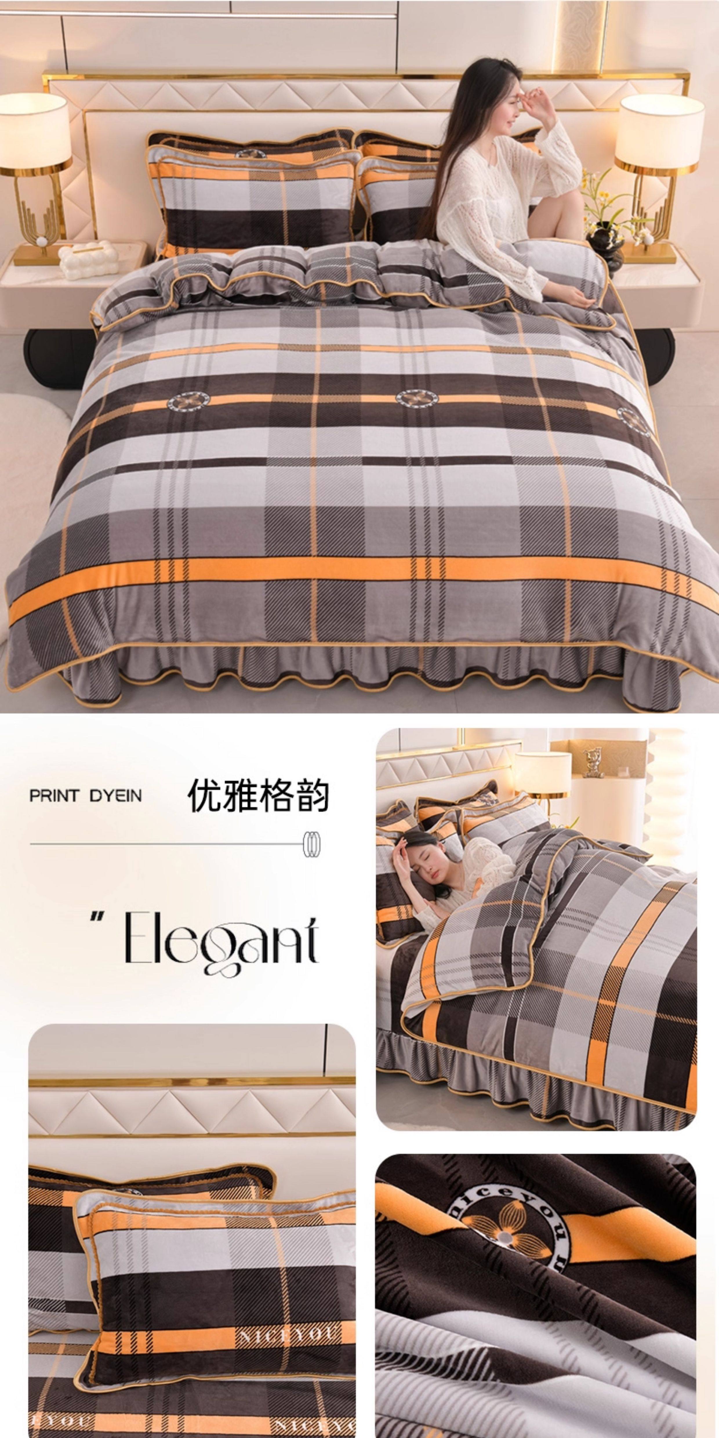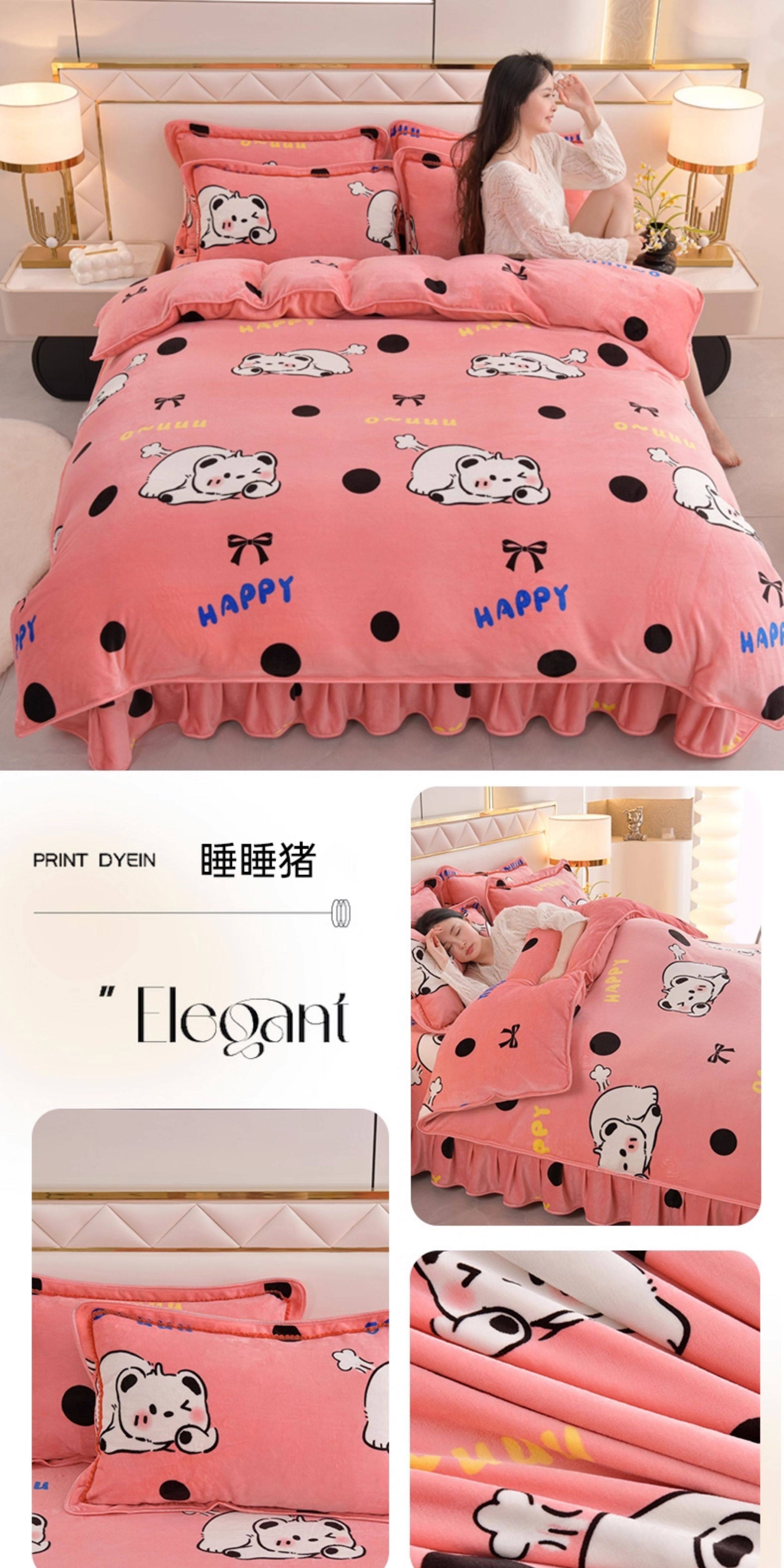 加绒牛奶绒四件套双面加厚珊瑚绒被套法兰绒床单床裙冬季床上用品
