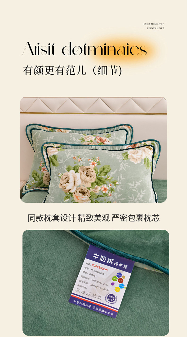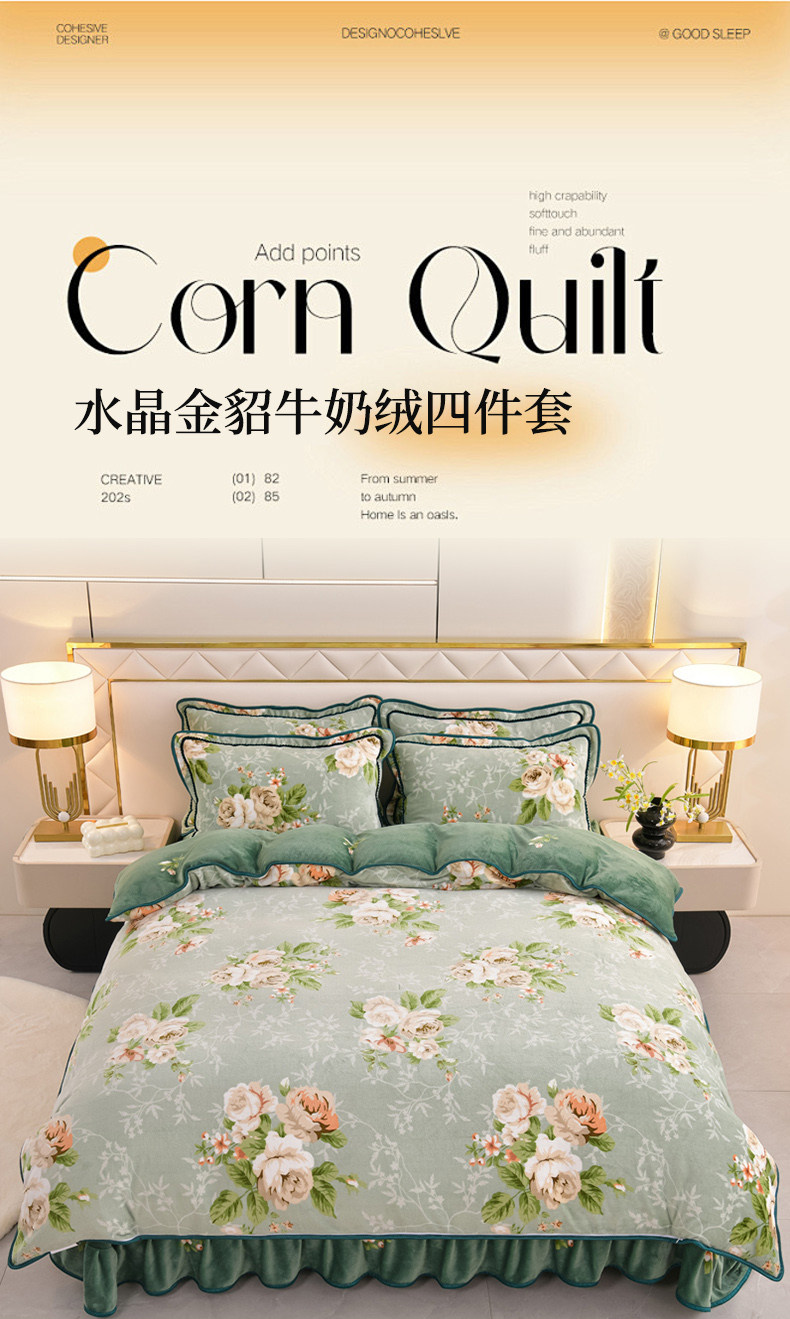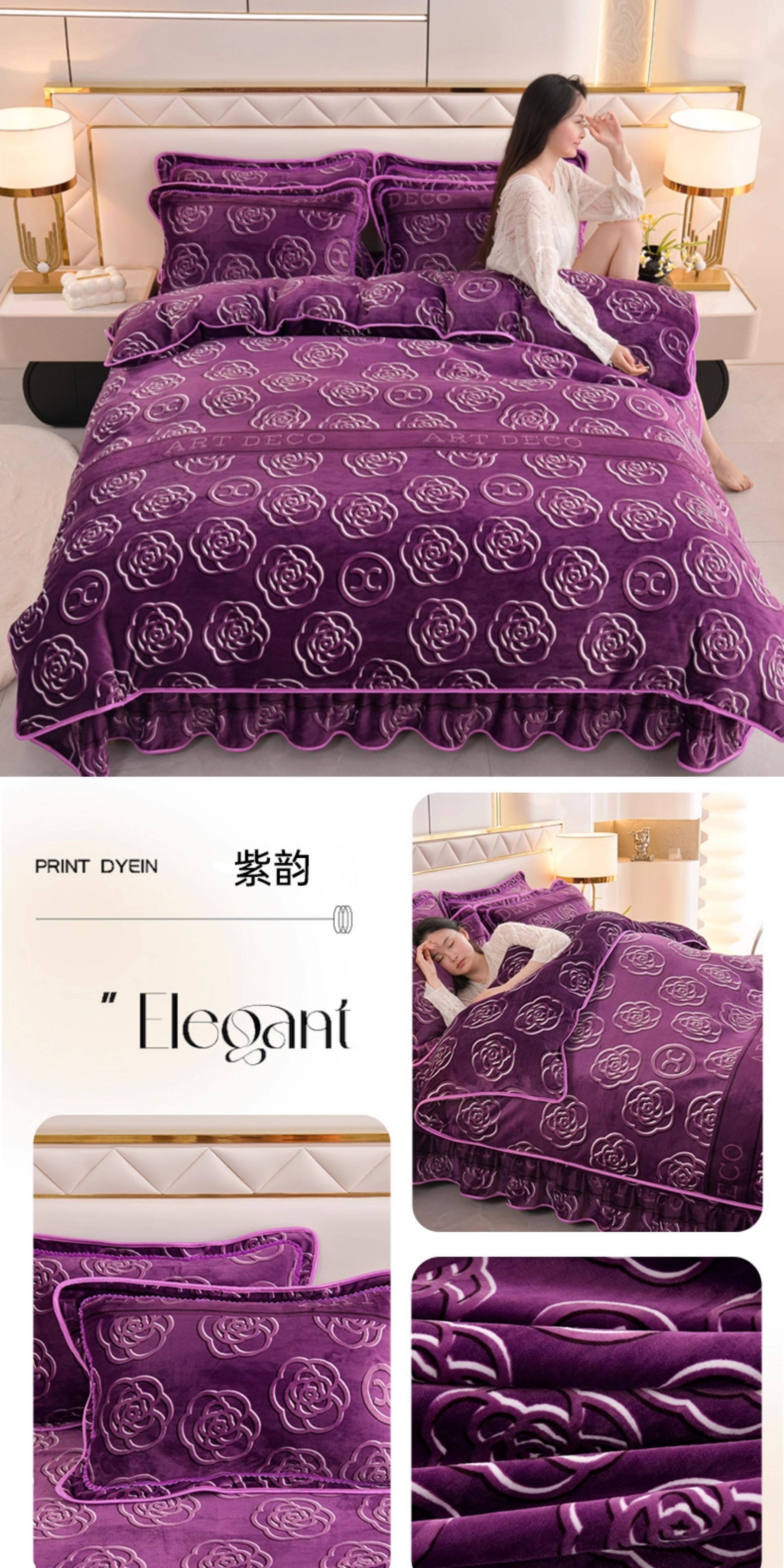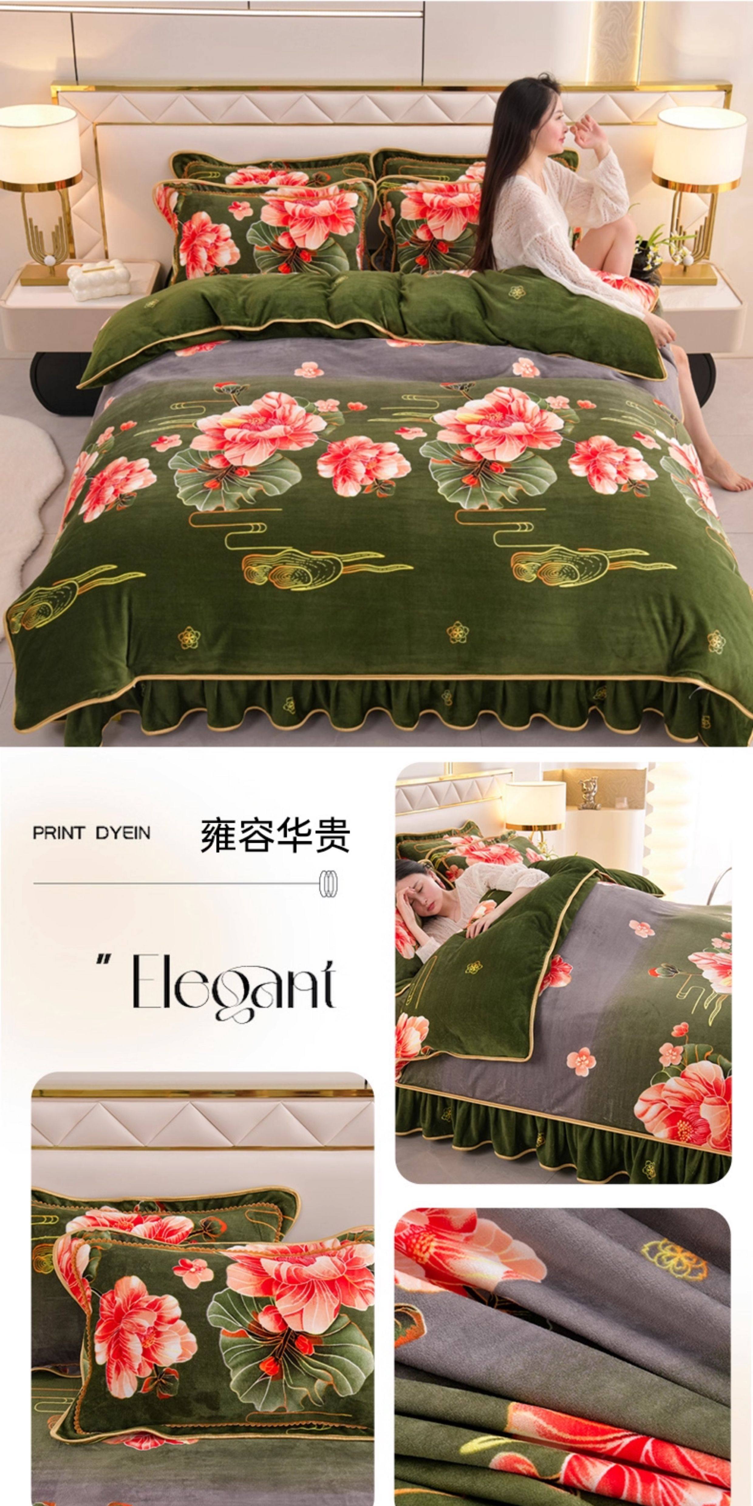 加绒牛奶绒四件套双面加厚珊瑚绒被套法兰绒床单床裙冬季床上用品