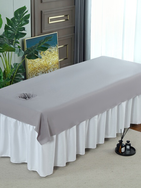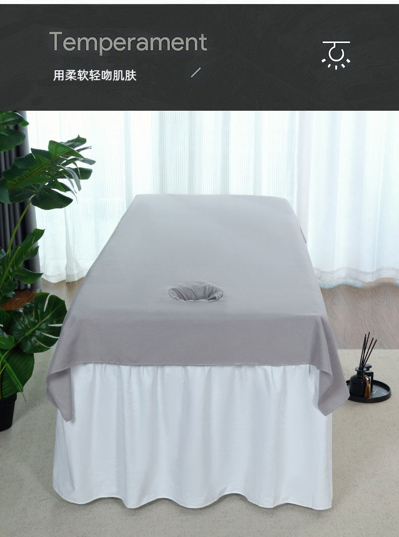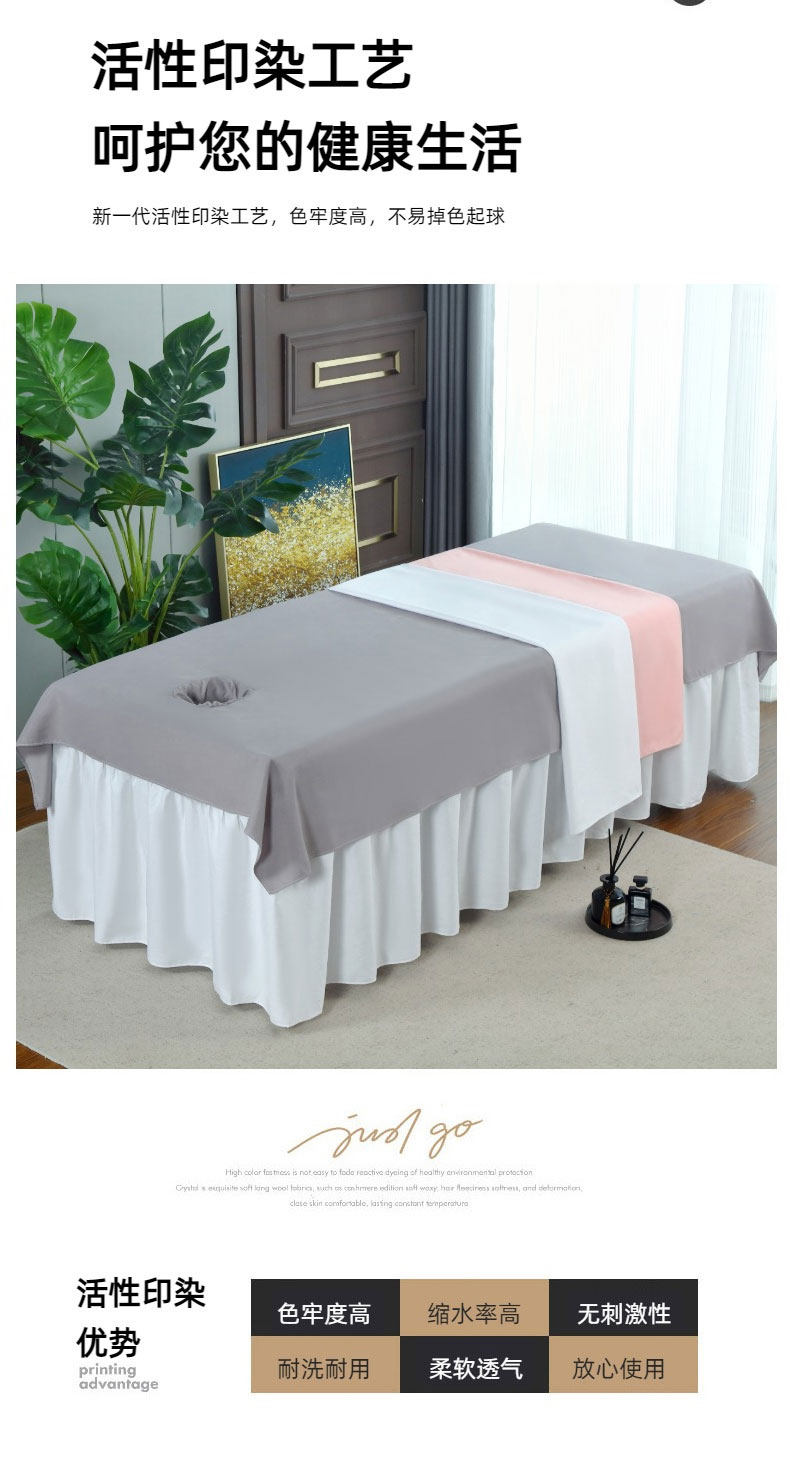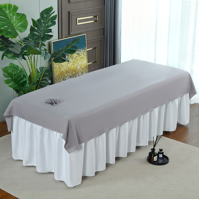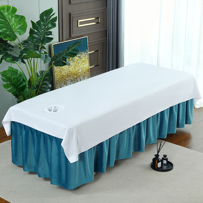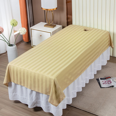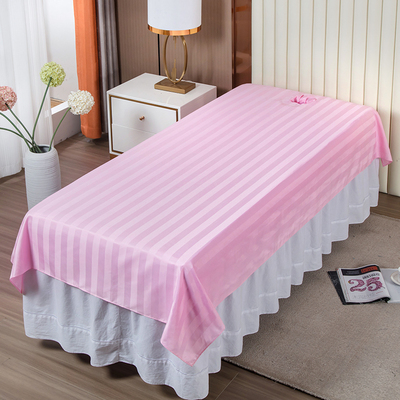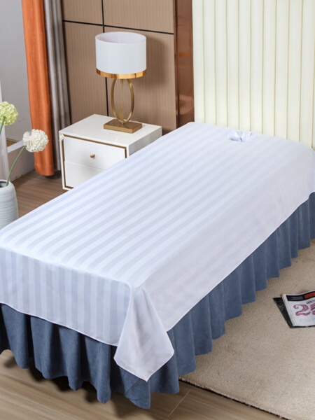 纯色高档美容床单单件白色可带洞条纹抗皱好洗易干按摩推拿床专用