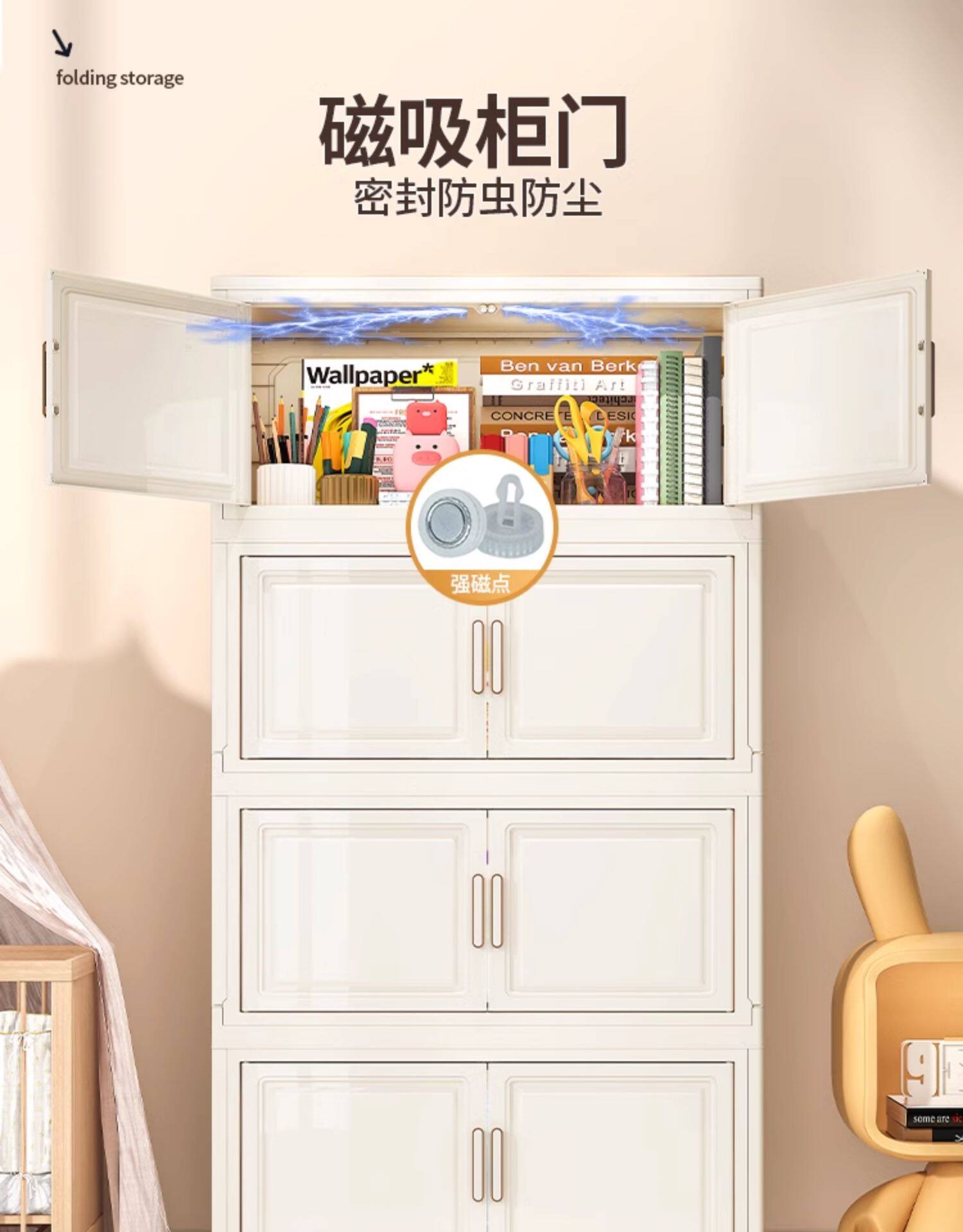 加厚收纳柜可折叠置物柜家用宝宝衣柜衣服整理零食玩具塑料储物柜