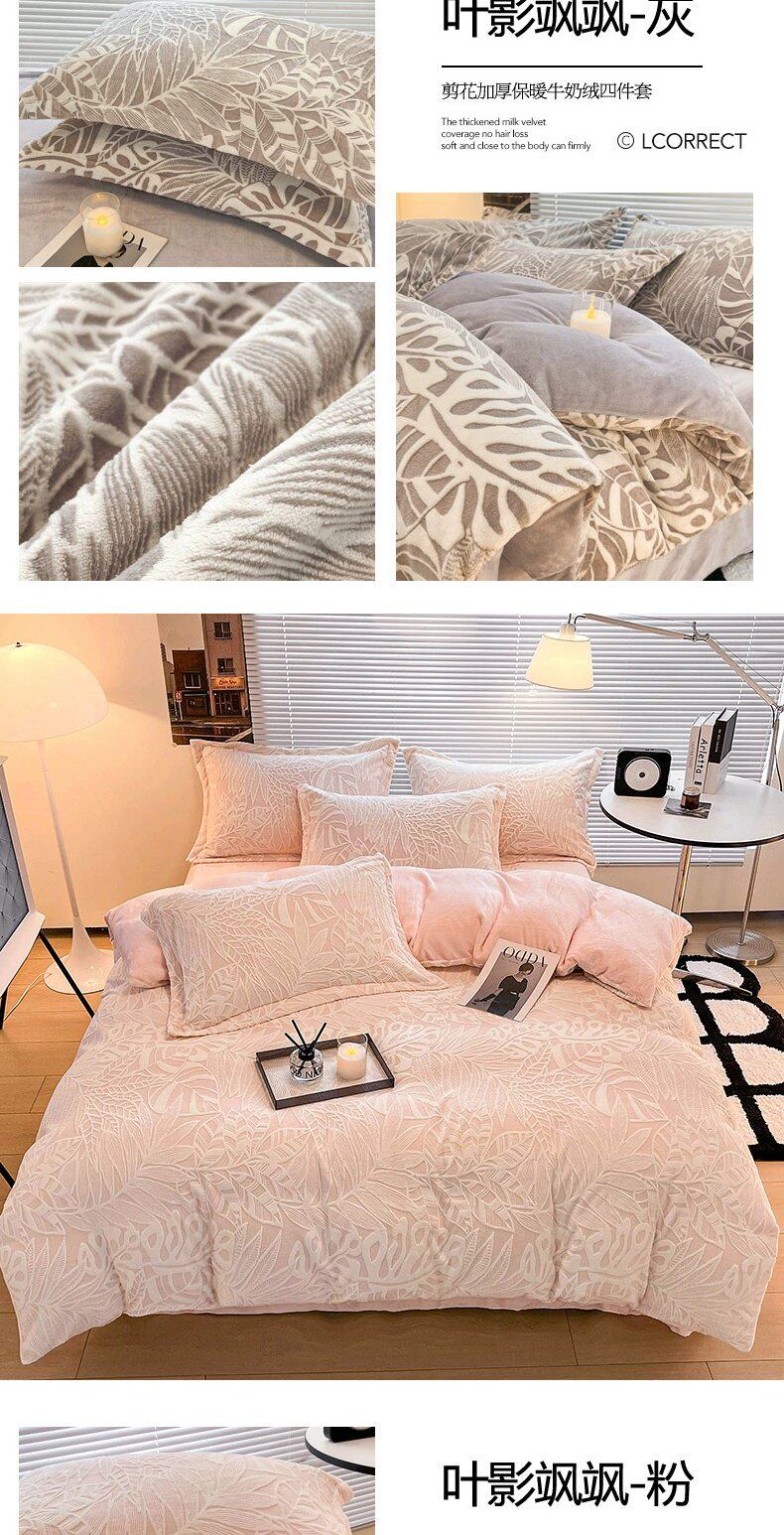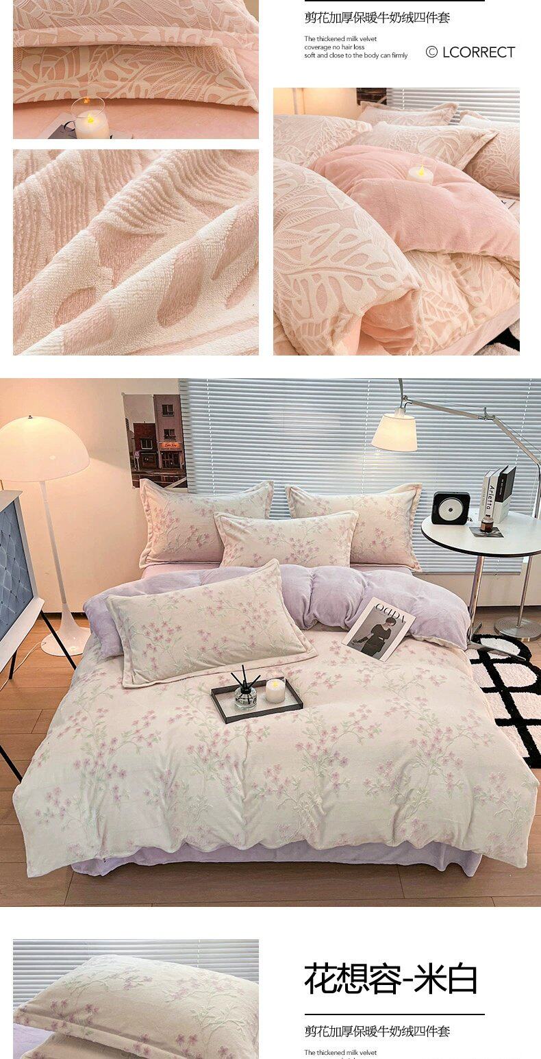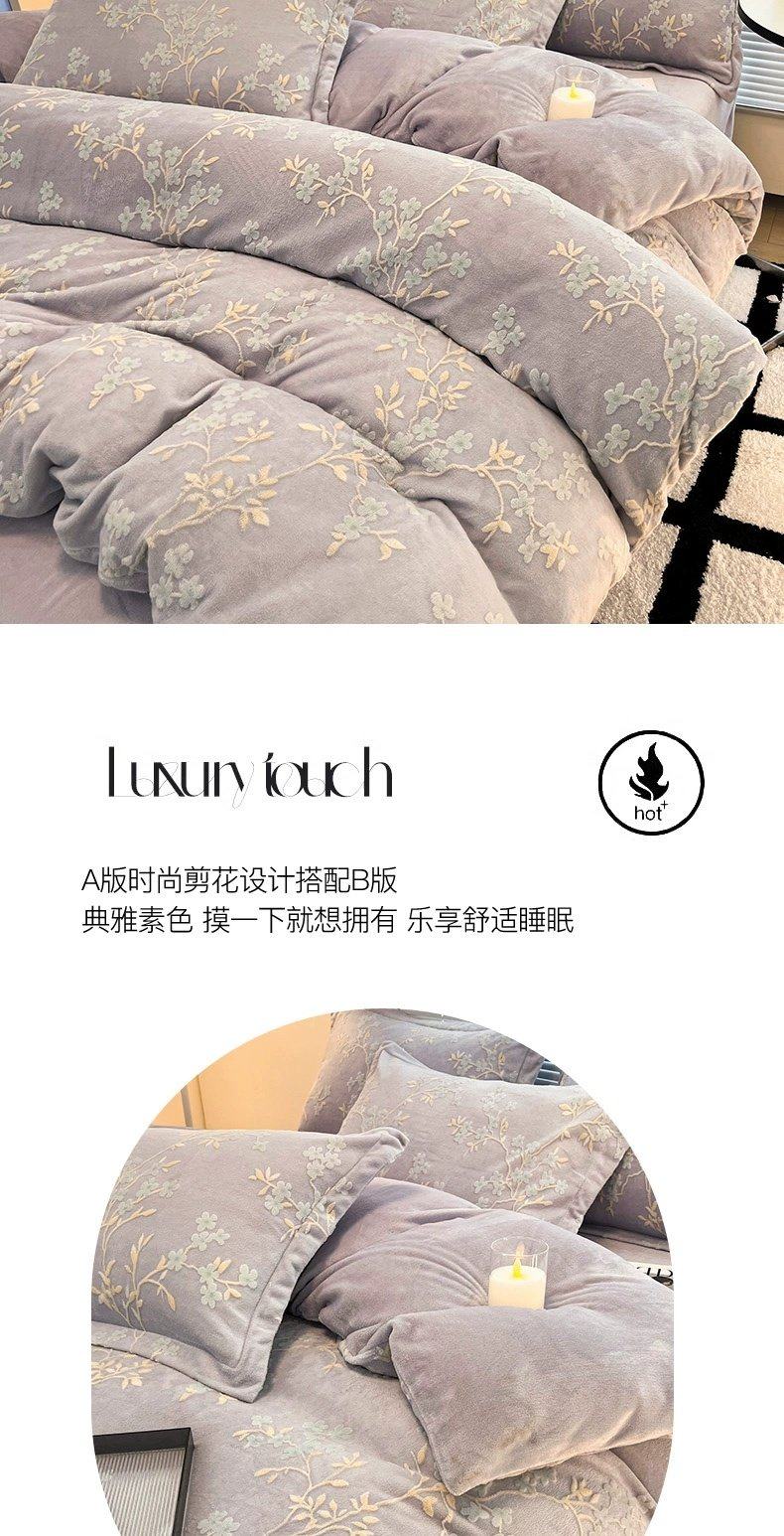 加厚保暖牛奶绒床上四件套雕花珊瑚绒2025新款床单被套三件套床笠
