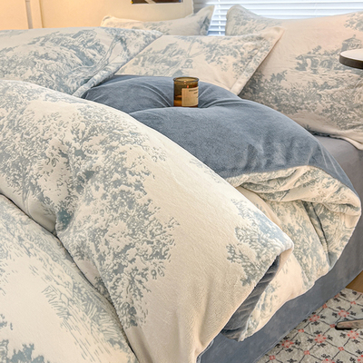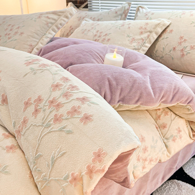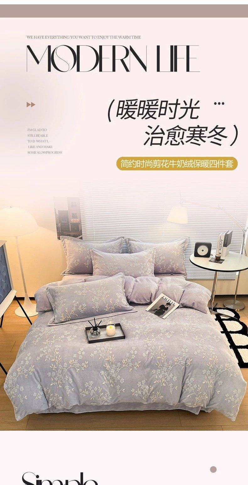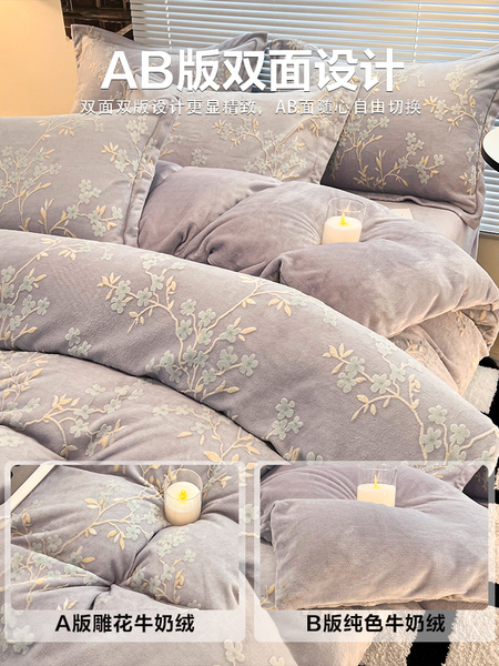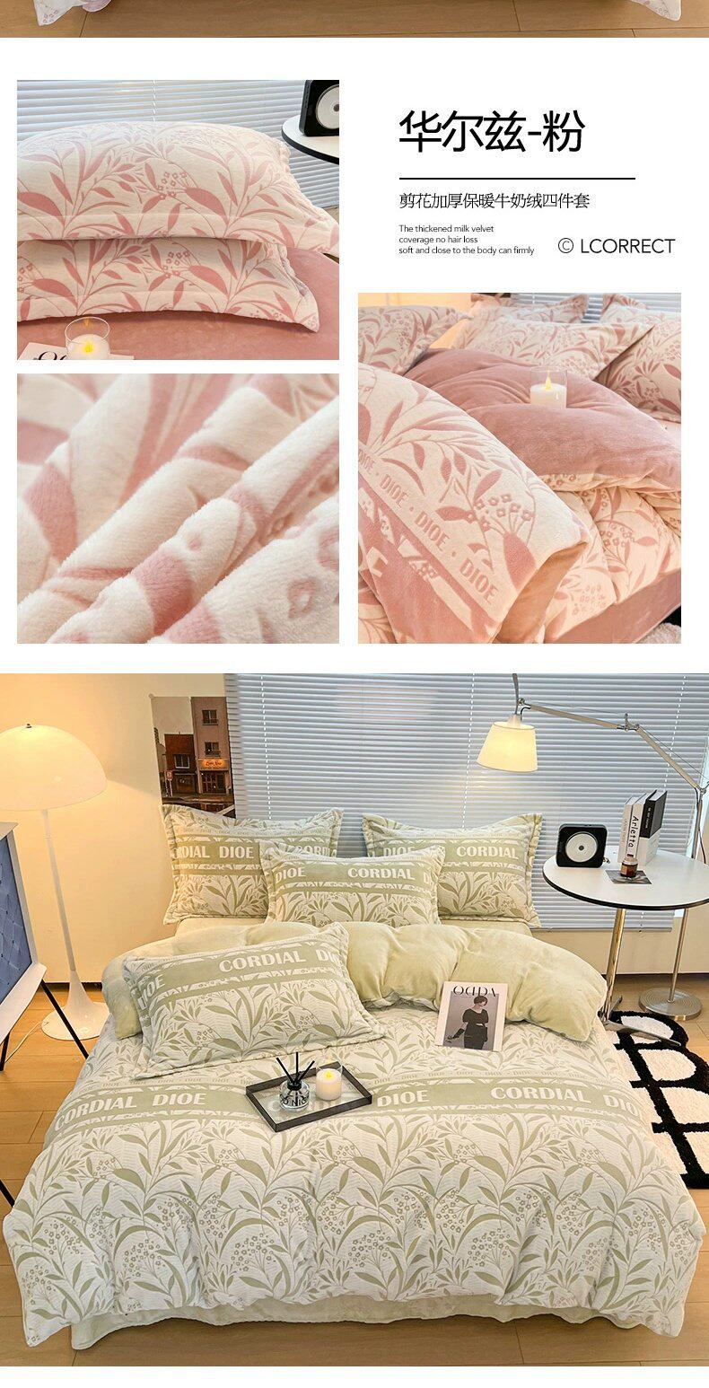 加厚保暖牛奶绒床上四件套雕花珊瑚绒2025新款床单被套三件套床笠