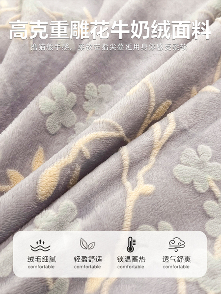 QM乐枝米灰【双倍加厚 雕花牛奶绒 抗静电】