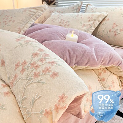 【抑菌款】QM爱意浓粉【双倍加厚 雕花牛奶绒 抗静电】