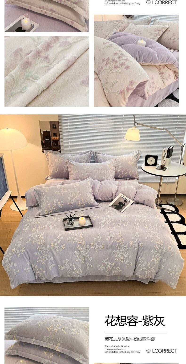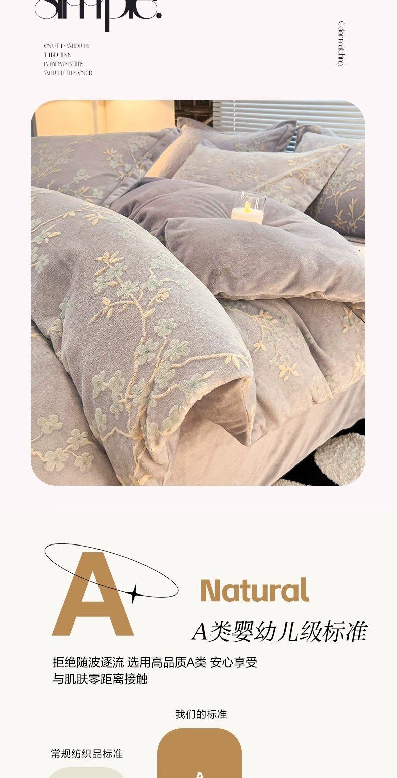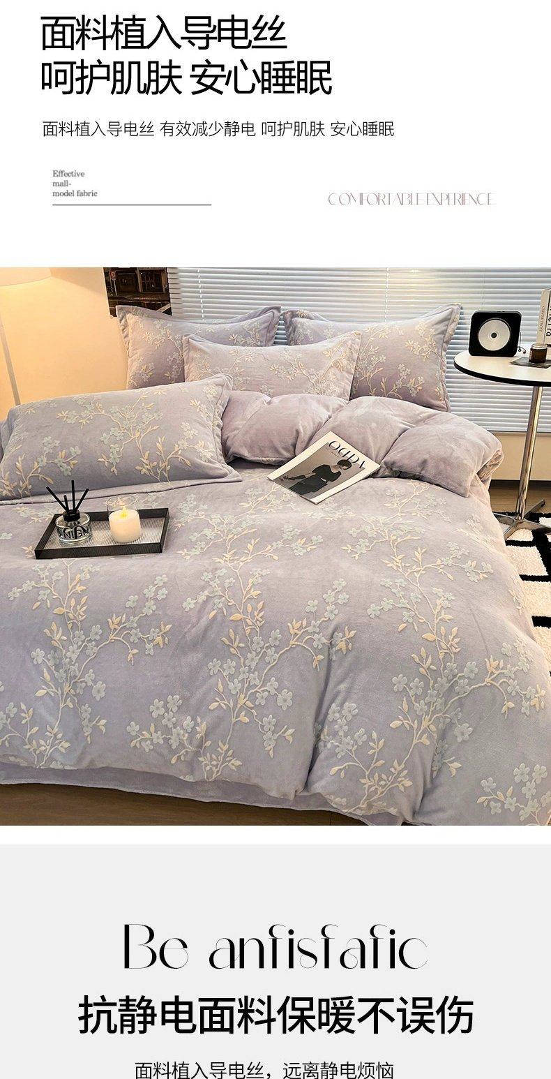 寐-花想容-紫灰【双倍加厚 雕花牛奶绒 抗静电】