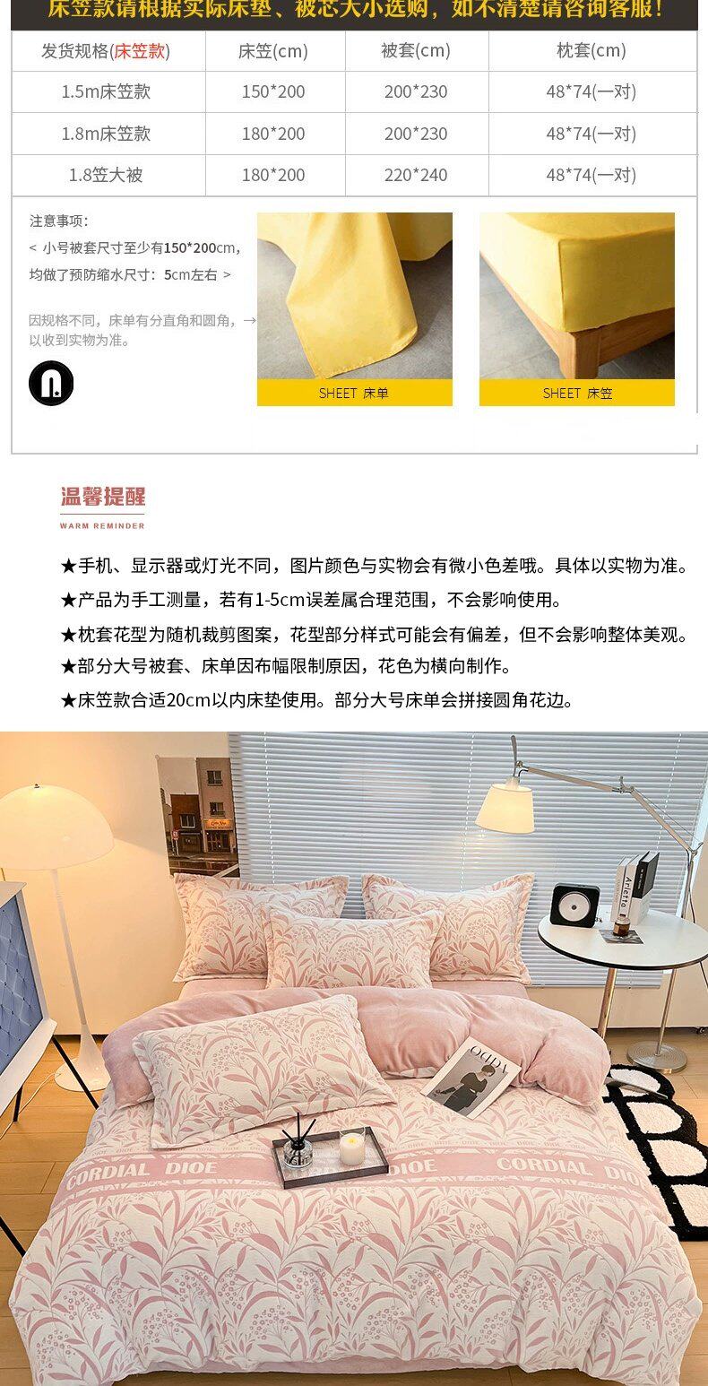 四件套 1.5m床笠款-适200x230被子