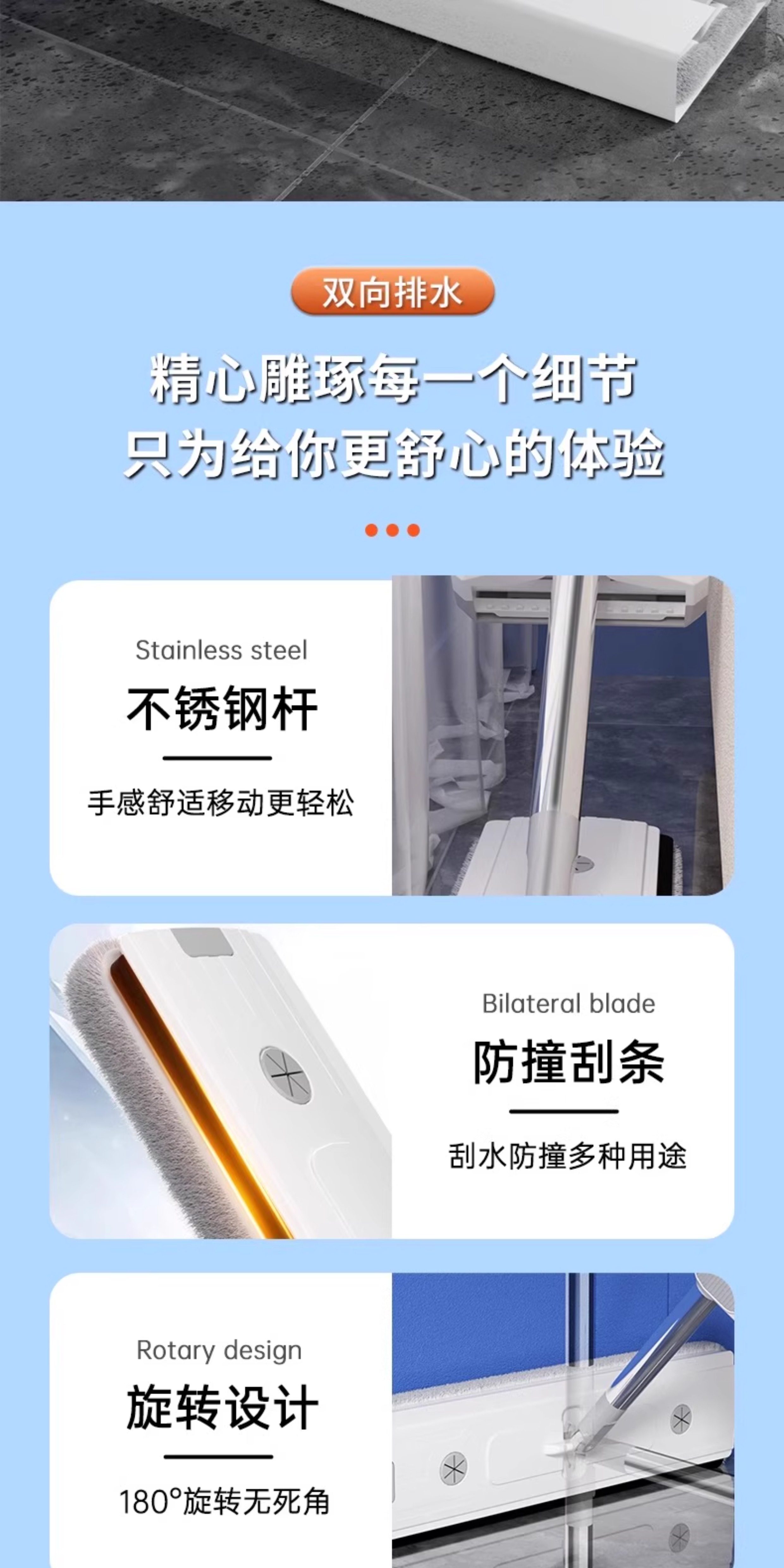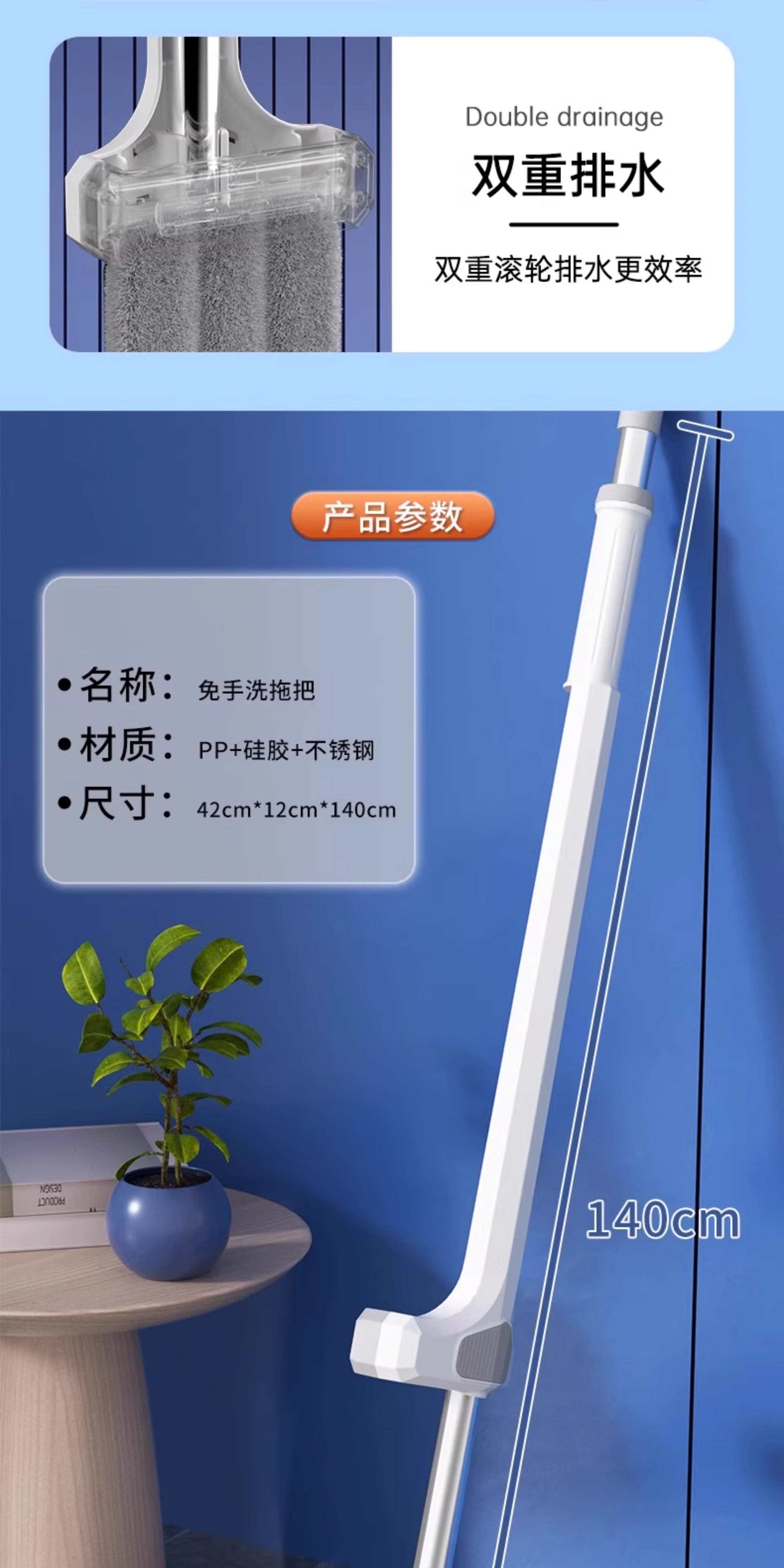 42CM双层面板+4块雪尼尔拖布【便携锁扣+不锈钢刮水器】