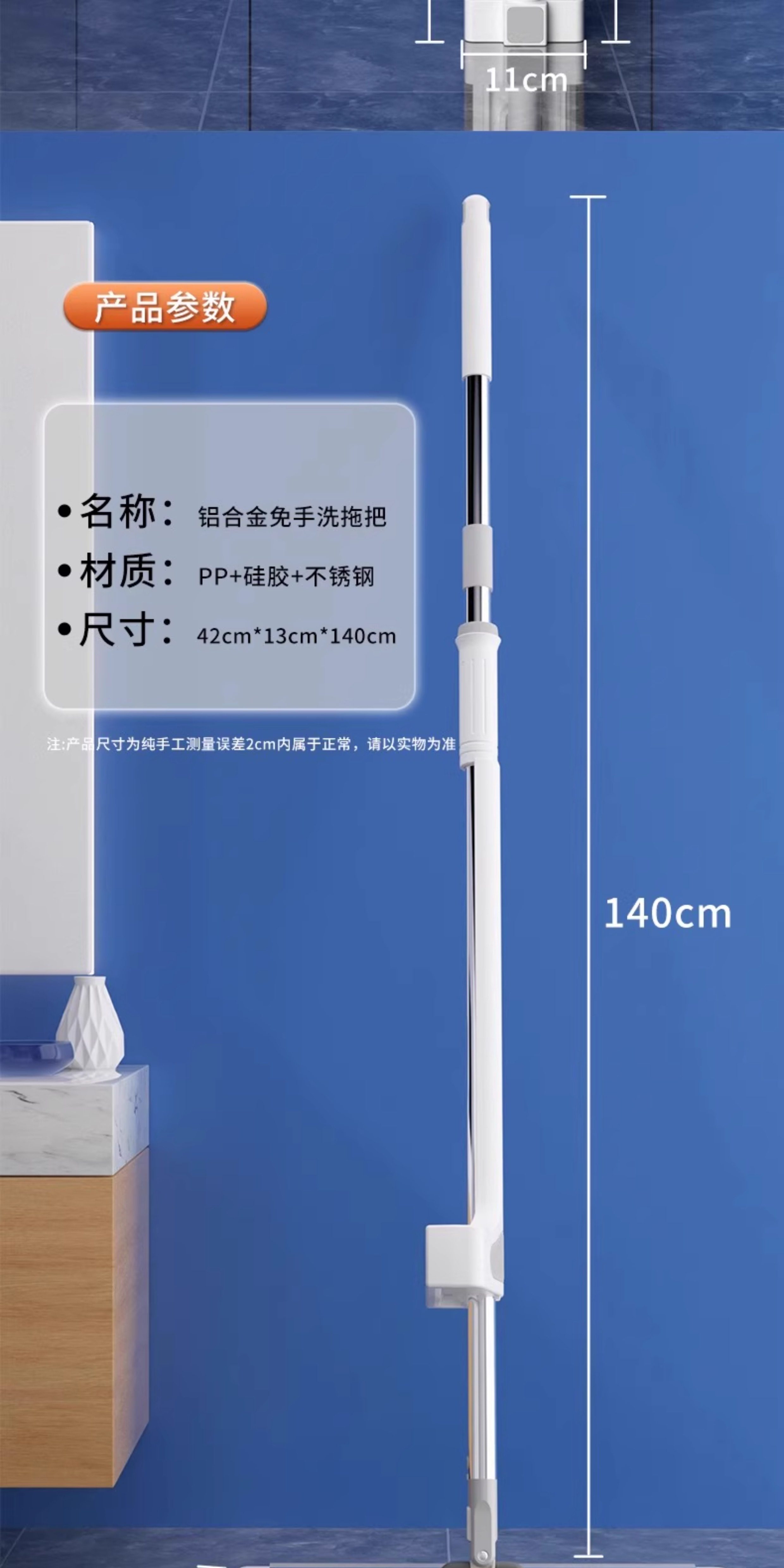 42CM双层面板+2块雪尼尔拖布【便携锁扣+不锈钢刮水器】