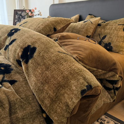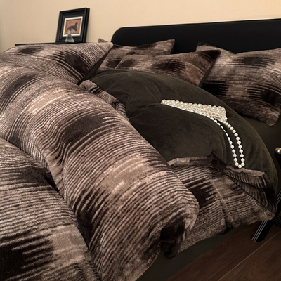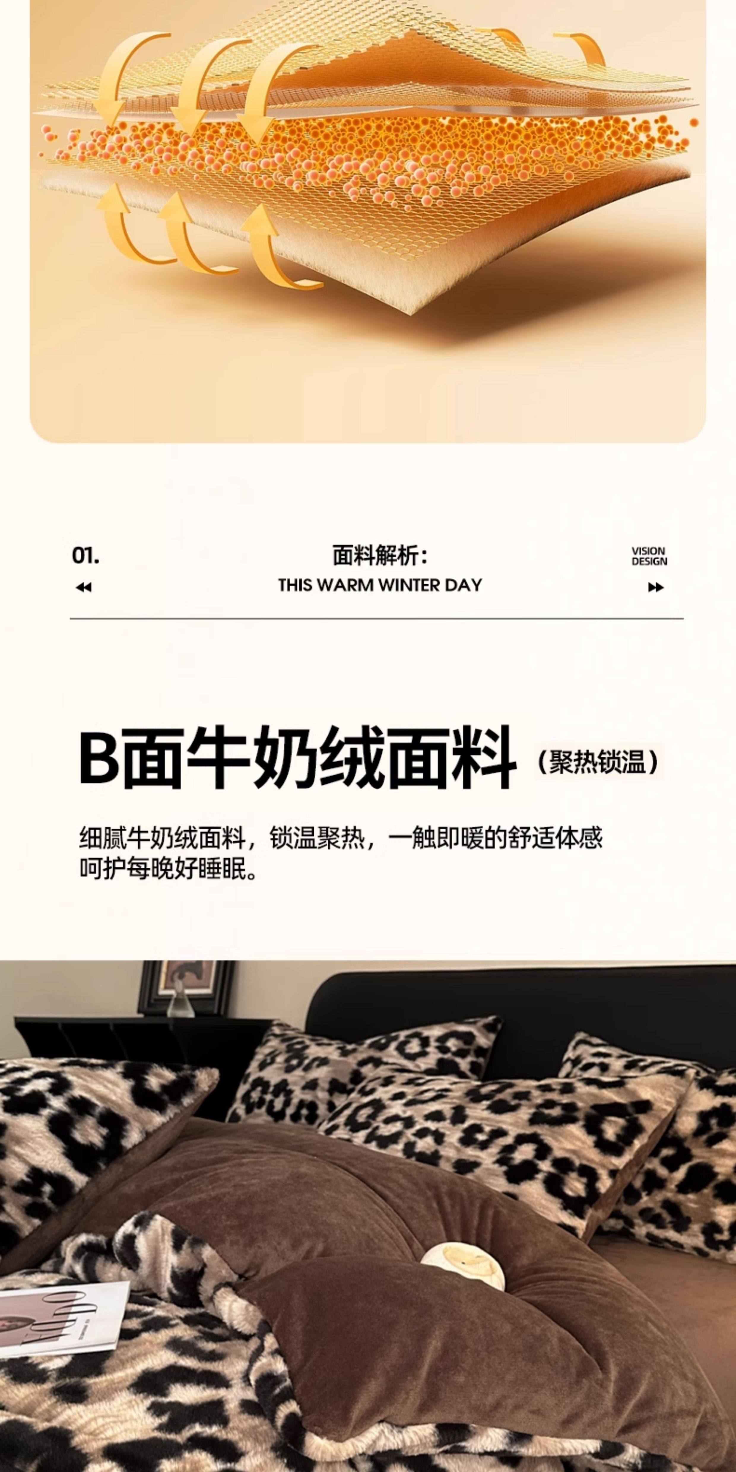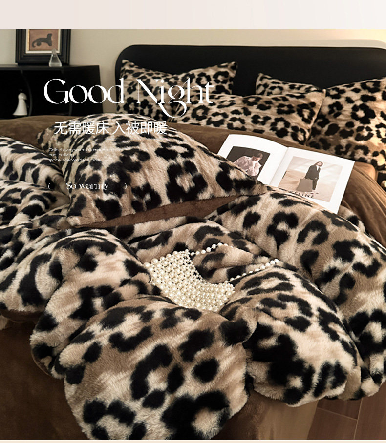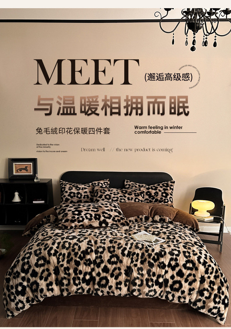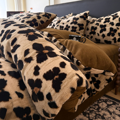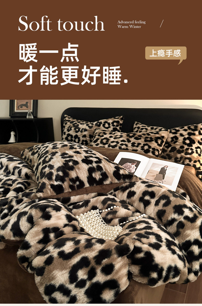 豹纹兔绒牛奶绒床上四件套冬季法兰珊瑚绒双面加厚保暖床单被套罩