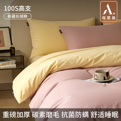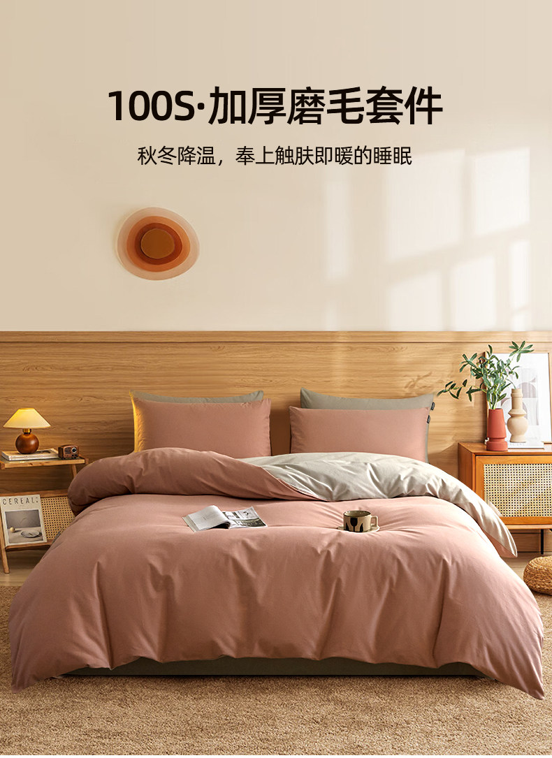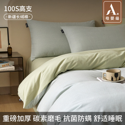 高端加厚100S全棉磨毛四件套2025新款纯棉床单笠被套秋冬床品三4