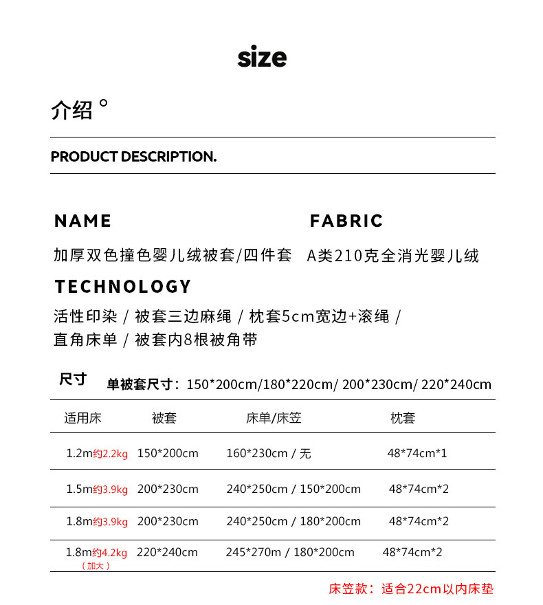 1.8m床笠款四件套(配200*230cm被套)