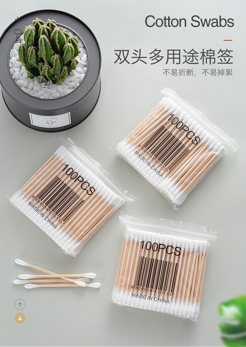 双头棉签掏耳朵化妆一次性卫生棉棒清洁挖耳勺木棒棉花棒专用家用