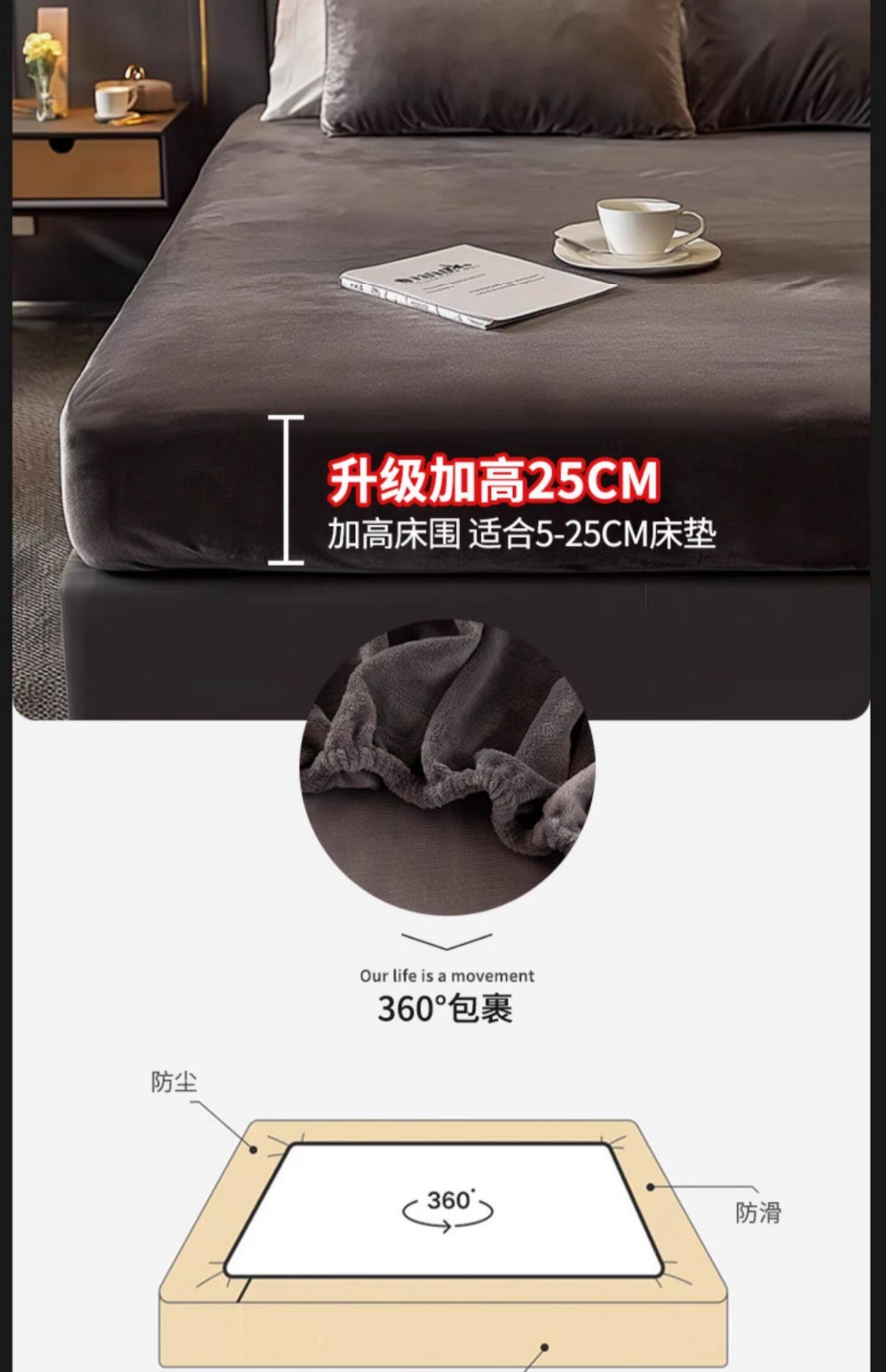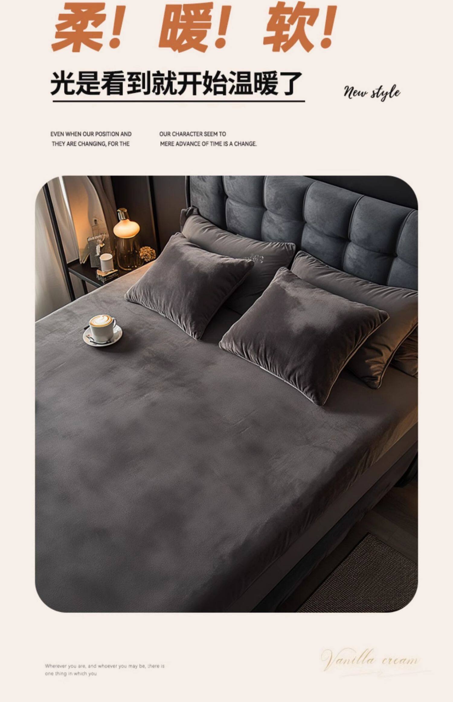 牛奶绒床笠罩冬季加绒2025新款四季通用床垫保护罩珊瑚绒全包床单