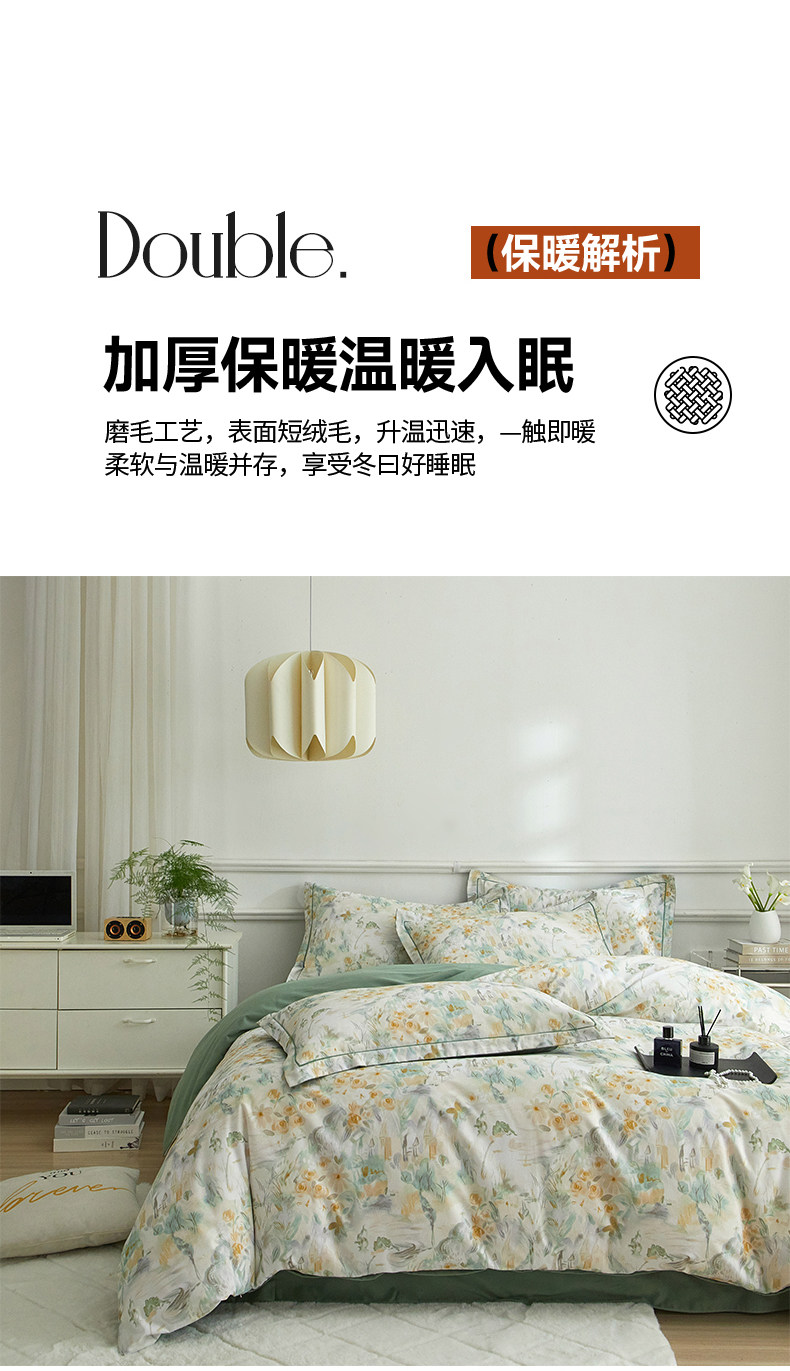轻奢100支加厚全棉磨毛四件套纯棉秋冬保暖床单被套床笠款三件套