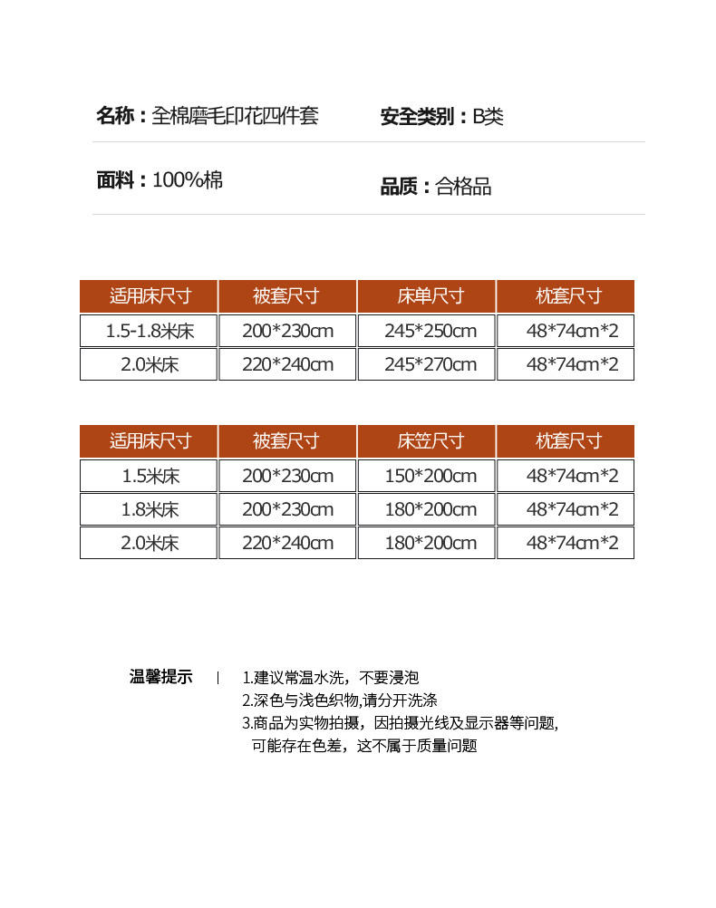 1.8米床笠款加大四件【被套220*240床笠180*200】