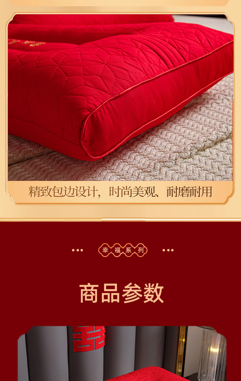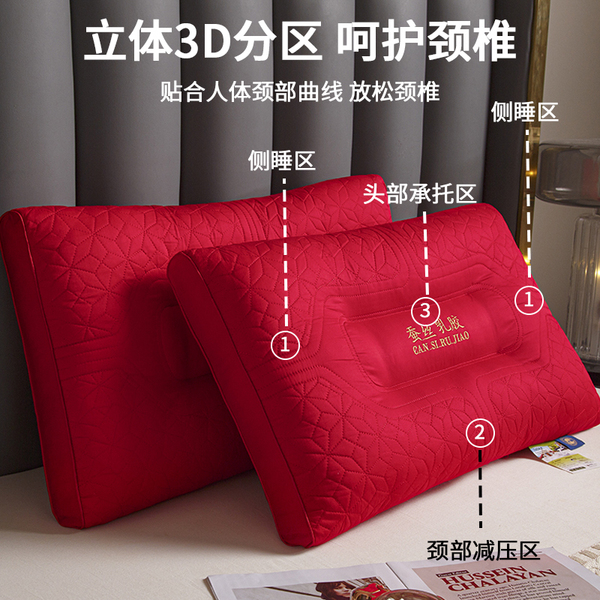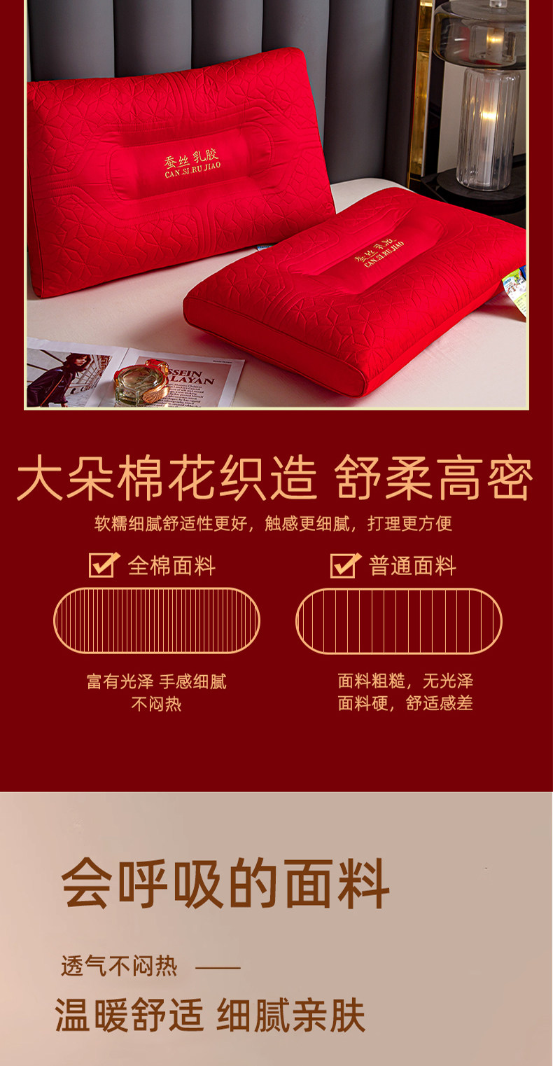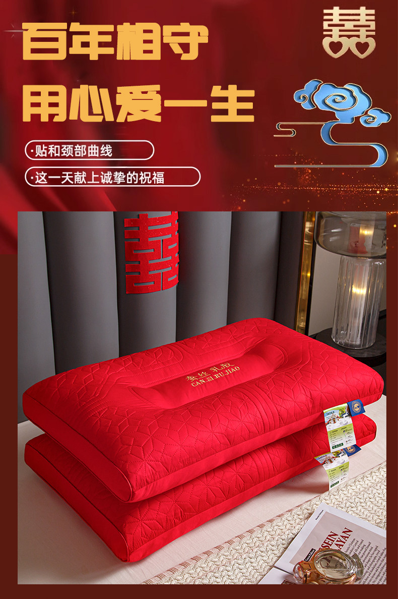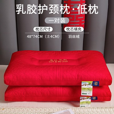 新款结婚枕头芯一对装护颈椎助睡眠全棉大红色新婚庆乳胶枕陪嫁礼
