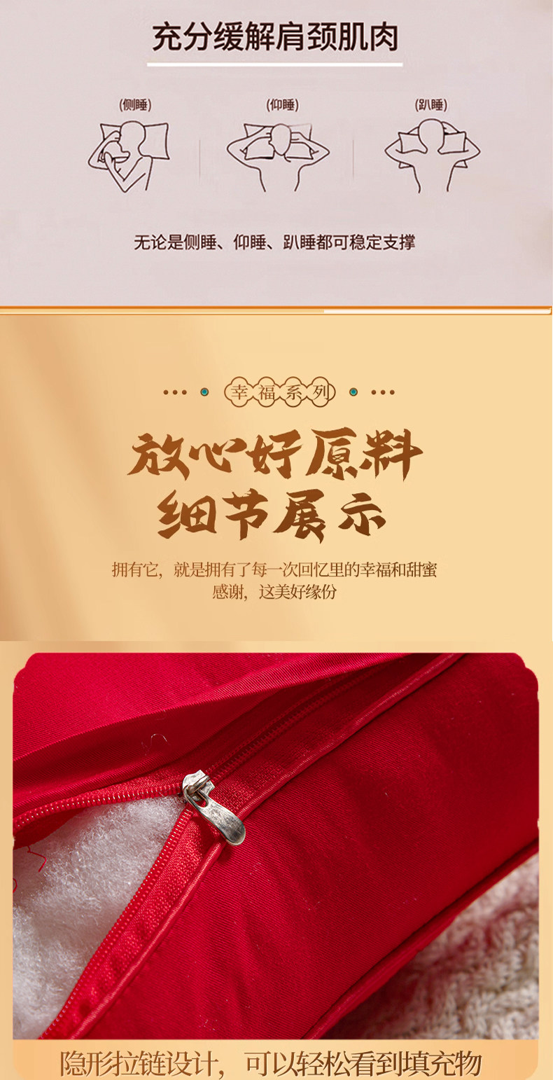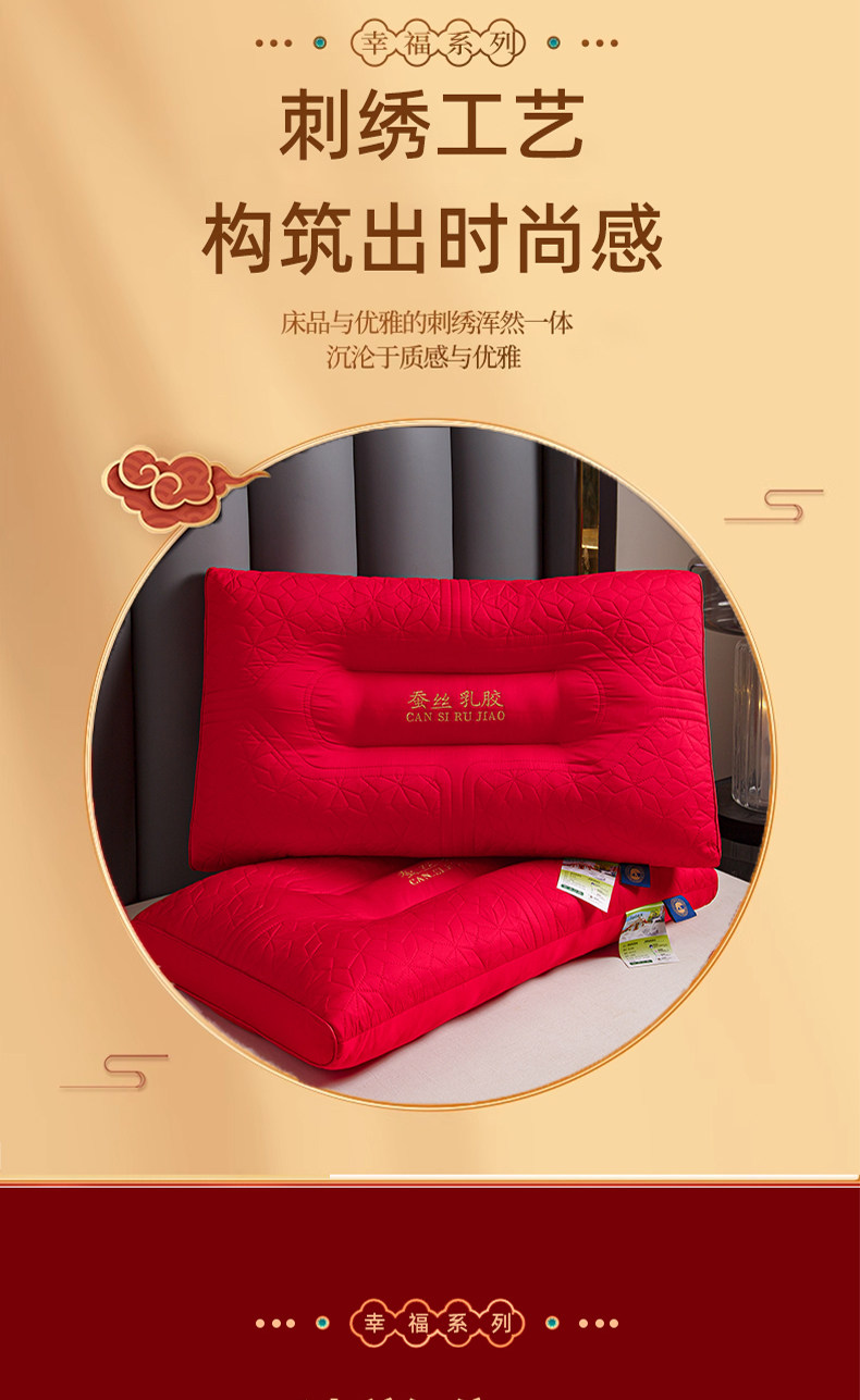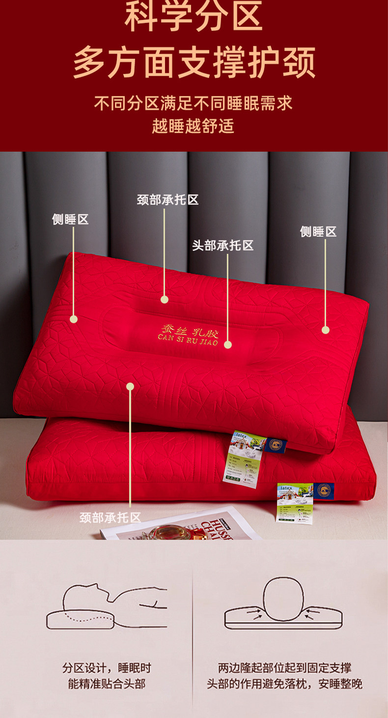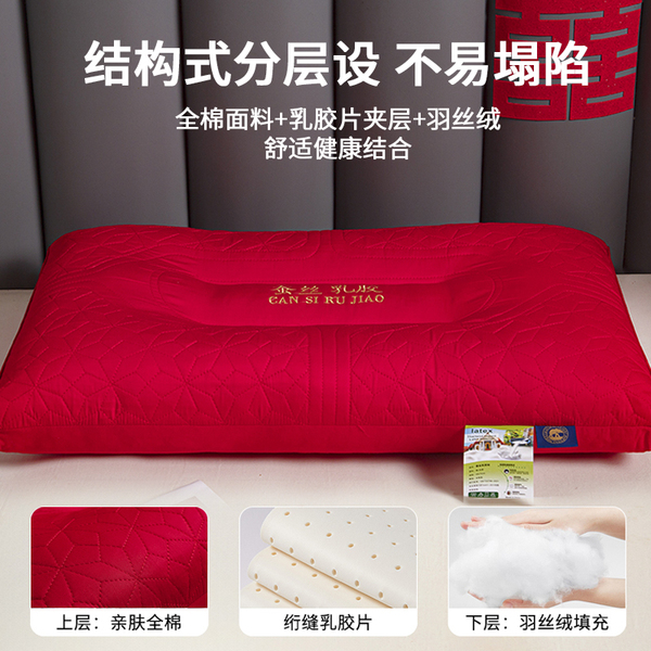 新款结婚枕头芯一对装护颈椎助睡眠全棉大红色新婚庆乳胶枕陪嫁礼