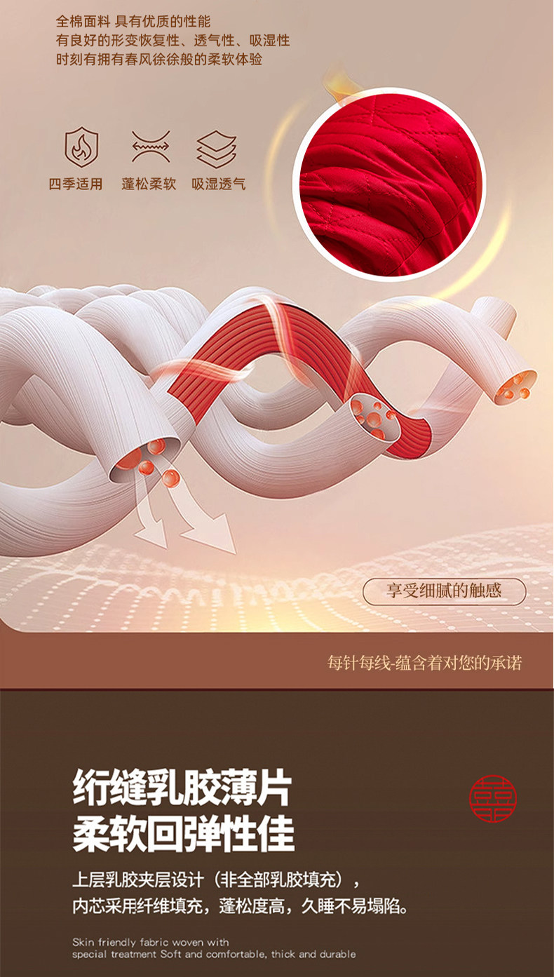 【一对装/48*74cm】红色中枕-全棉乳胶护颈枕