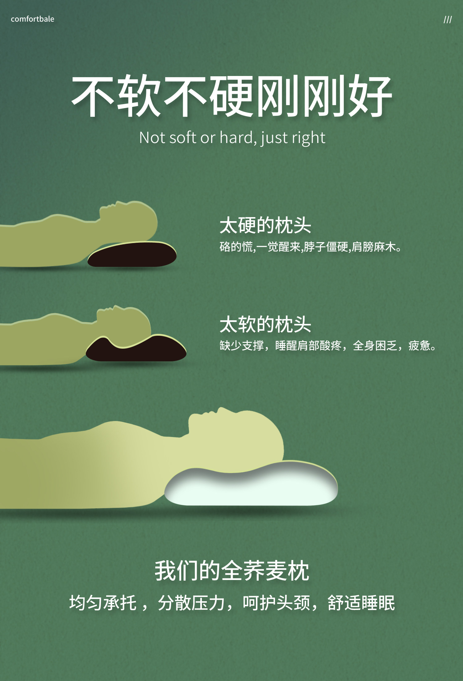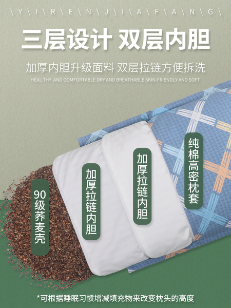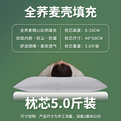 四季予你【中号高枕5.0斤装】双层内胆+纯棉枕套 90级荞麦壳
