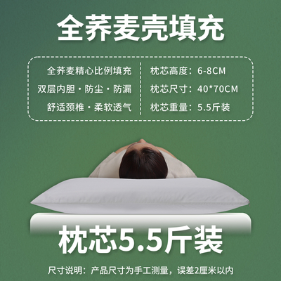 春夕花语【大号低枕5.5斤装】 双层内胆+纯棉枕套 90级荞麦壳