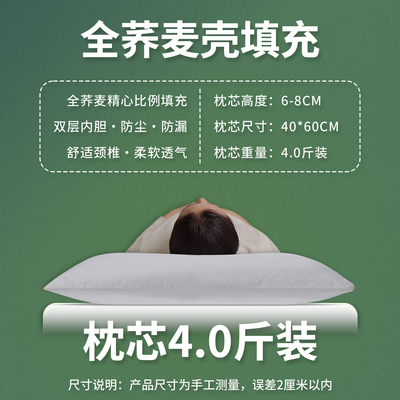 四季予你【中号低枕4.0斤装】双层内胆+纯棉枕套 90级荞麦壳