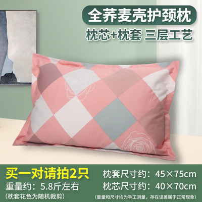 春夕花语【中号高枕5.0斤装】双层内胆+纯棉枕套 90级荞麦壳