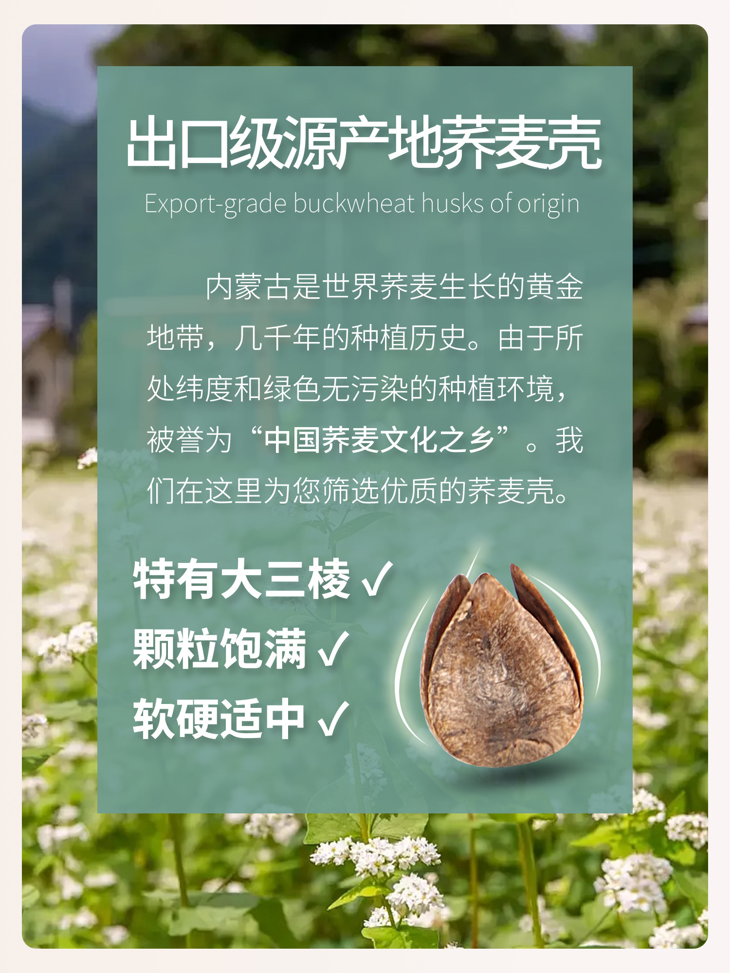 春夕花语【中号低枕4.0斤装】双层内胆+纯棉枕套 90级荞麦壳