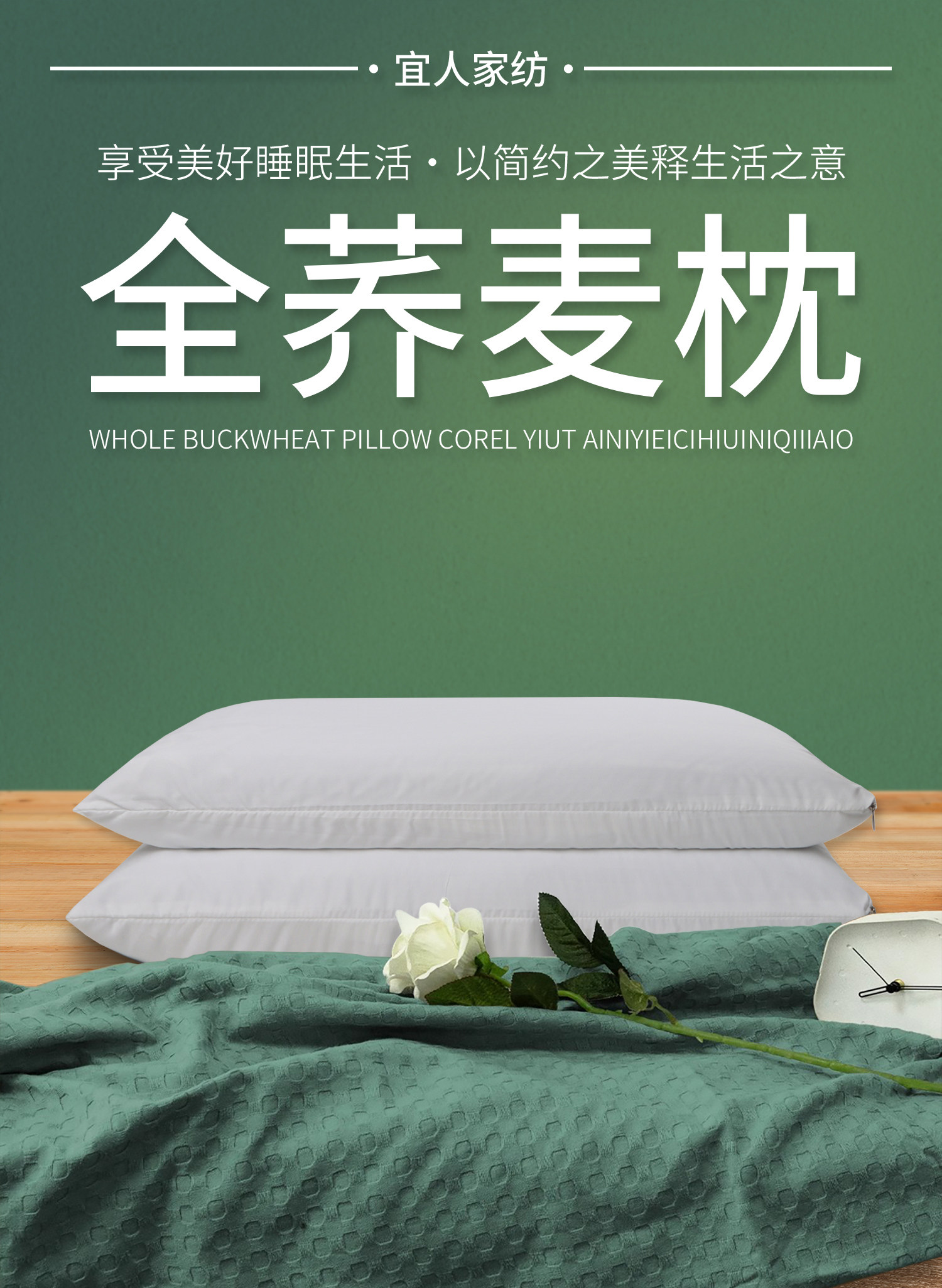 悠若花懿【特大高枕8.0斤装】 双层内胆+纯棉枕套 90级荞麦壳