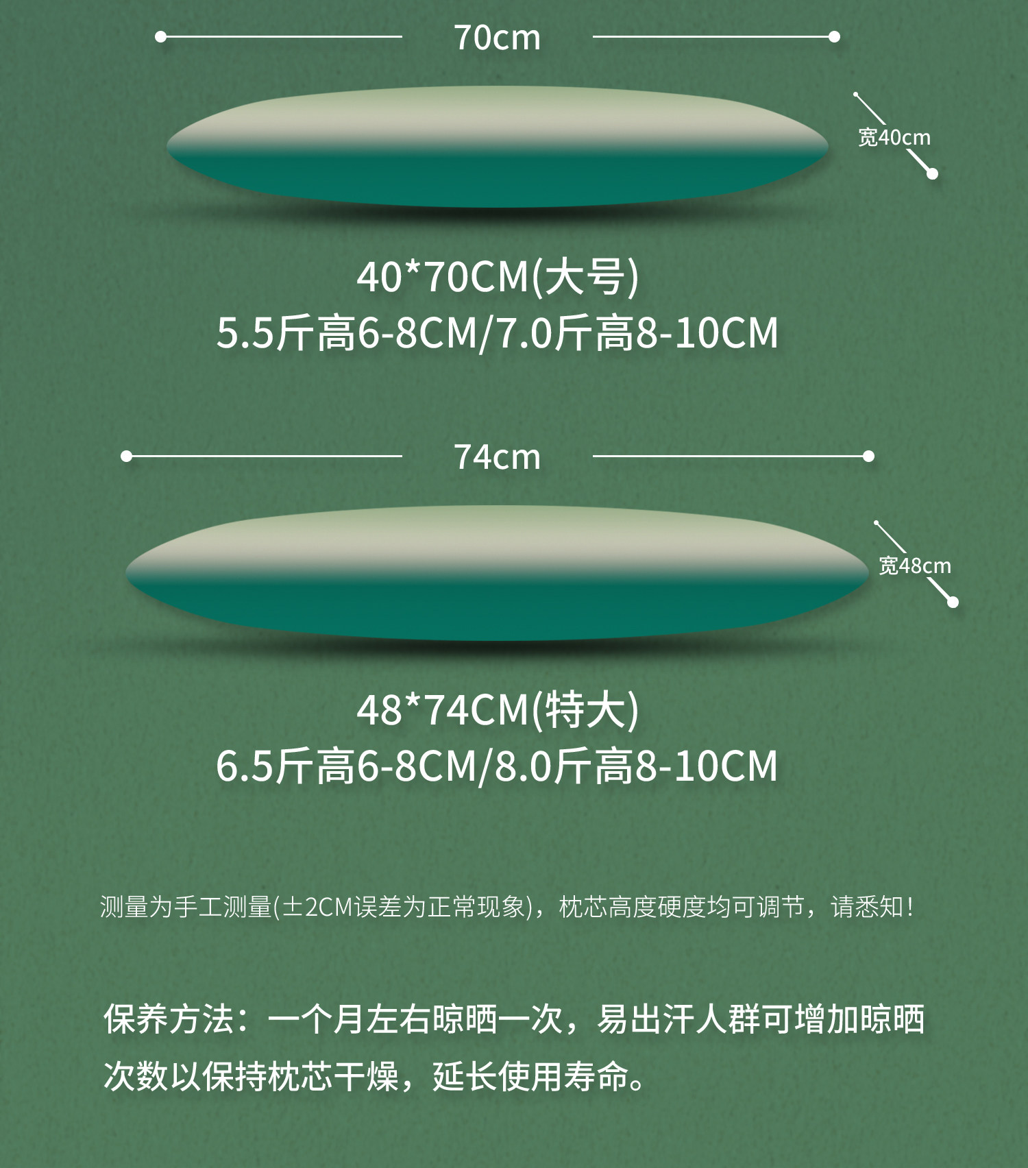 48*74cm【特大低枕6.5斤装-双层内胆】 无枕套 90级荞麦壳