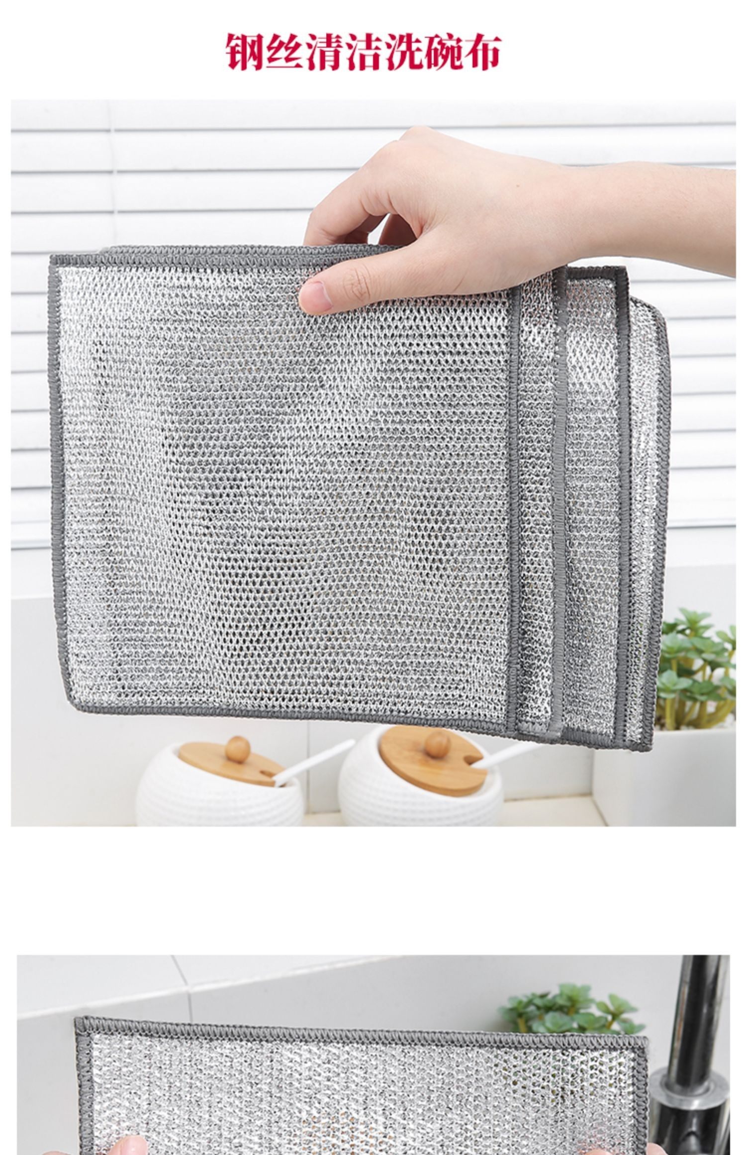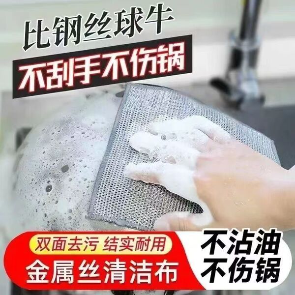 【升级加厚】钢丝抹布银丝不沾洗锅银丝抹布钢丝洗碗布厨房