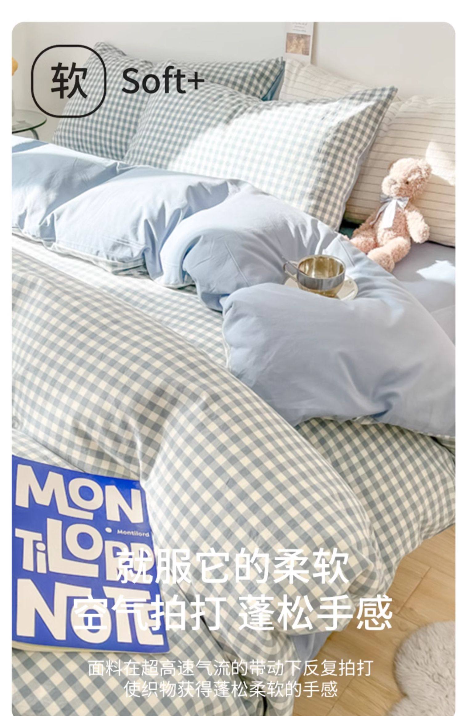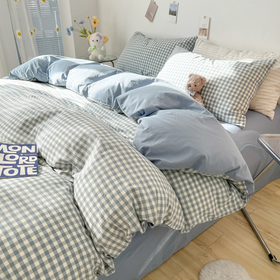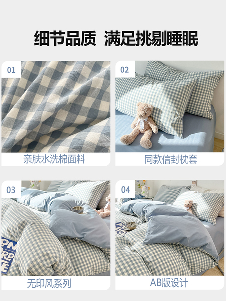 蓝小格【水洗棉面料 柔软舒适 不起球不掉色】