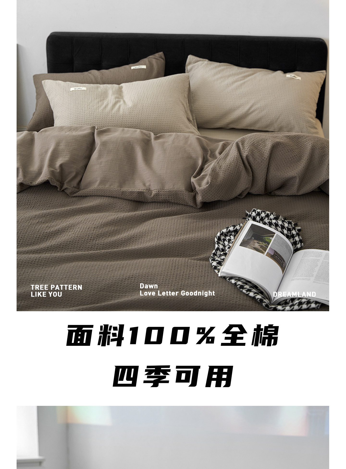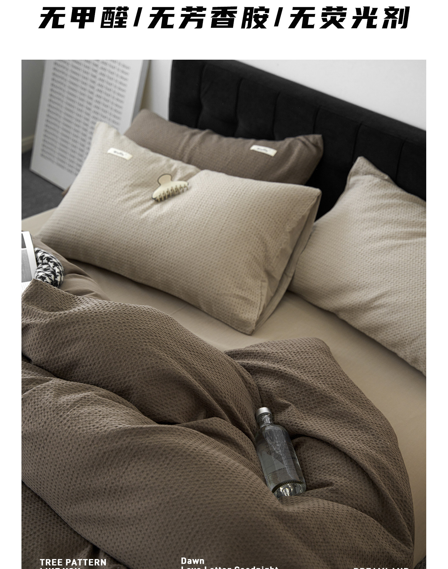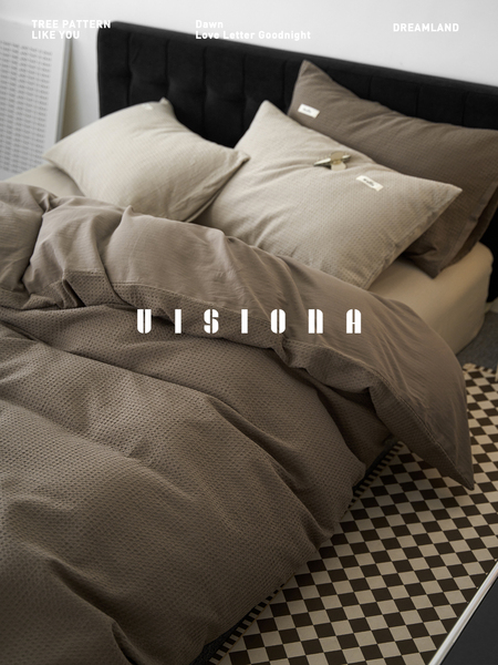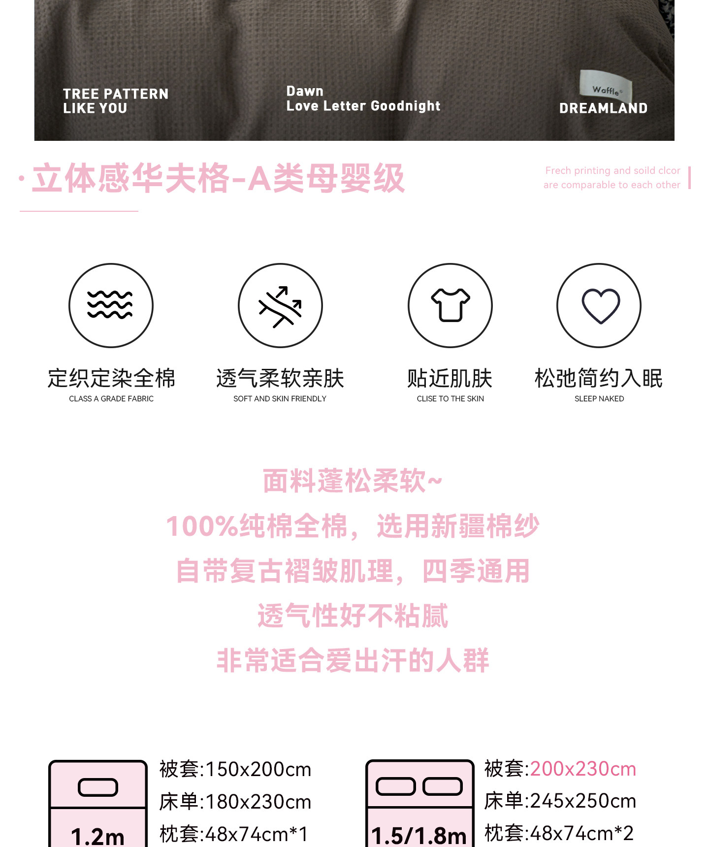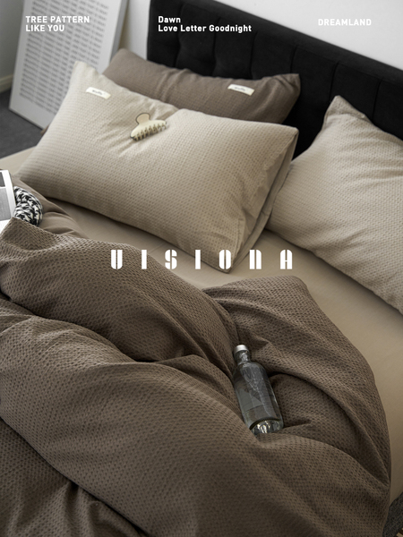 VISIONA幻想系列【柔光雾里】100%全棉华夫格四件套被套床单纯棉