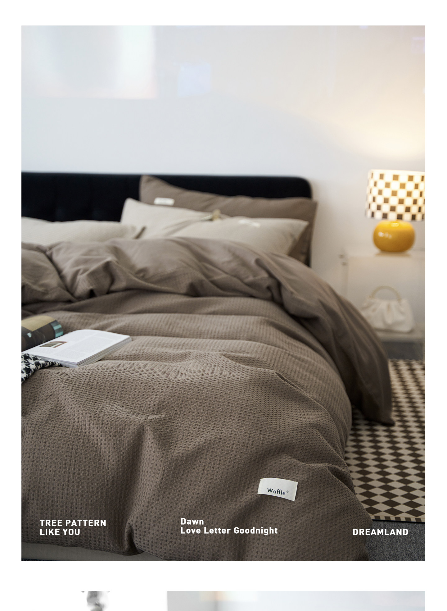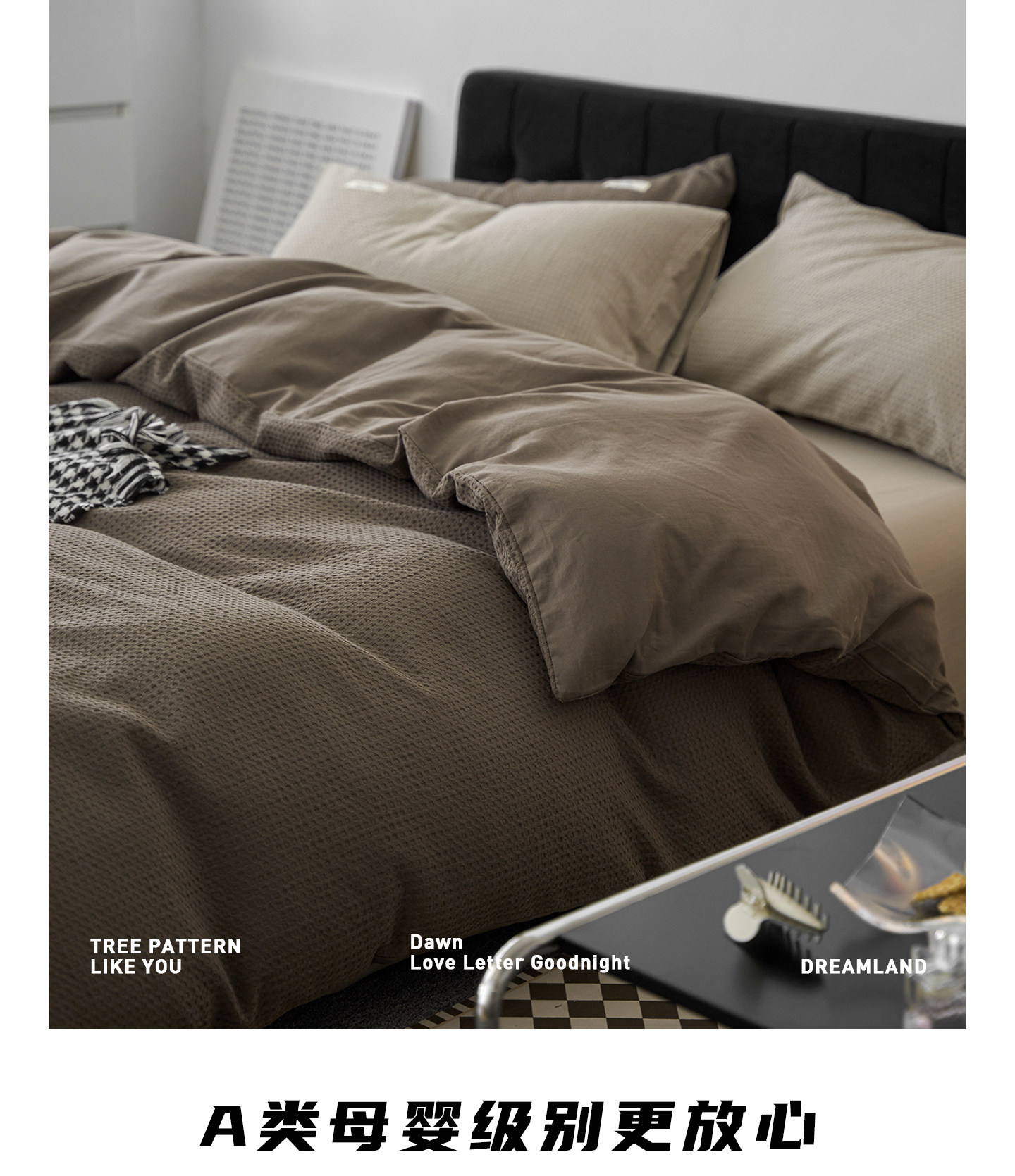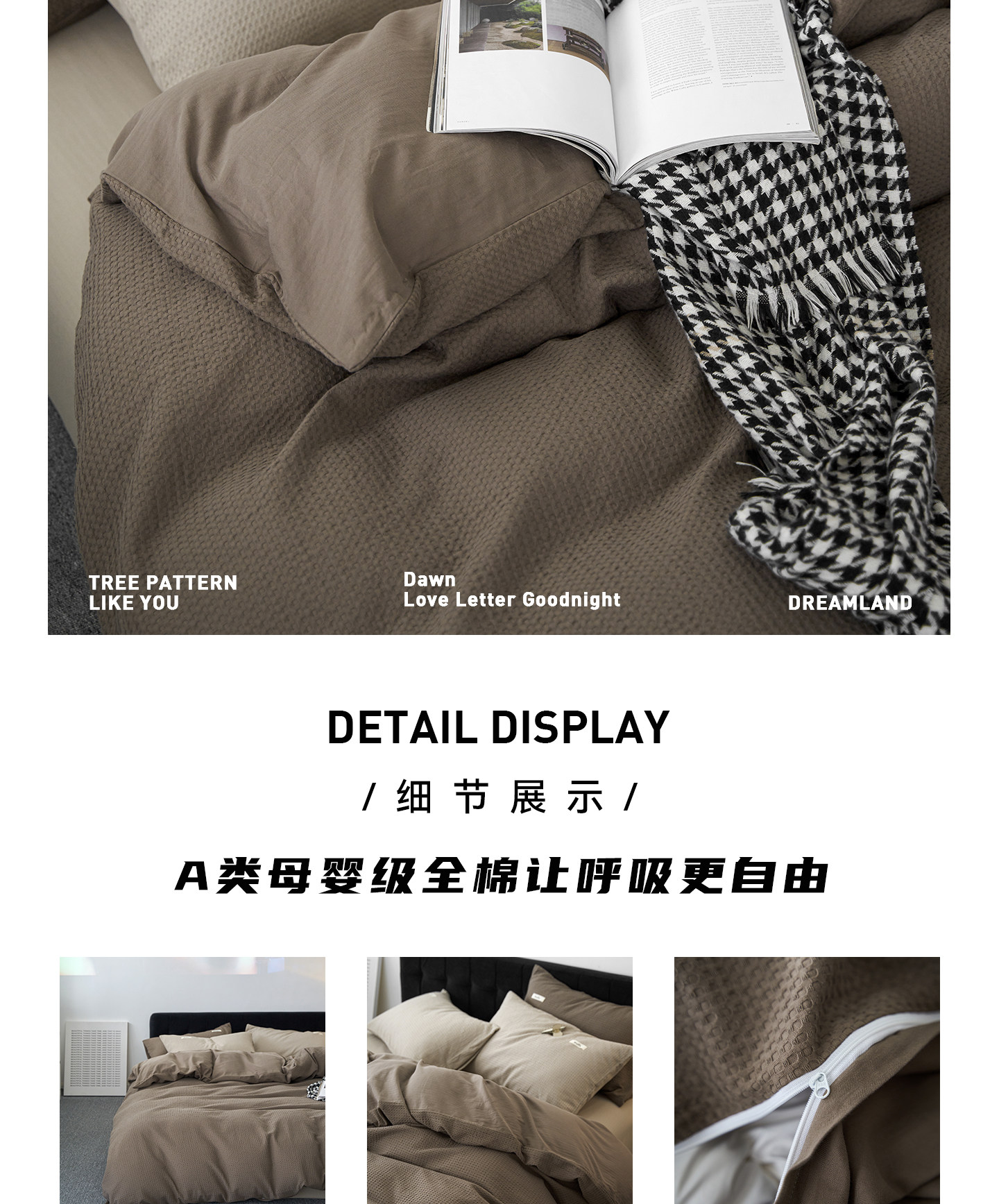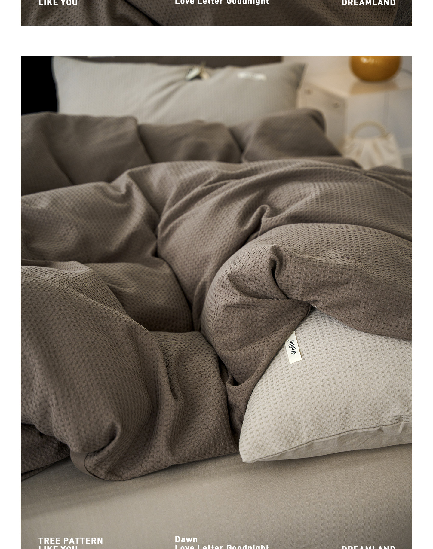 VISIONA幻想系列【柔光雾里】100%全棉华夫格四件套被套床单纯棉