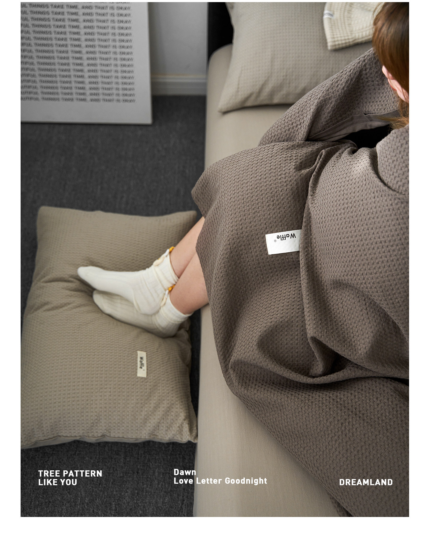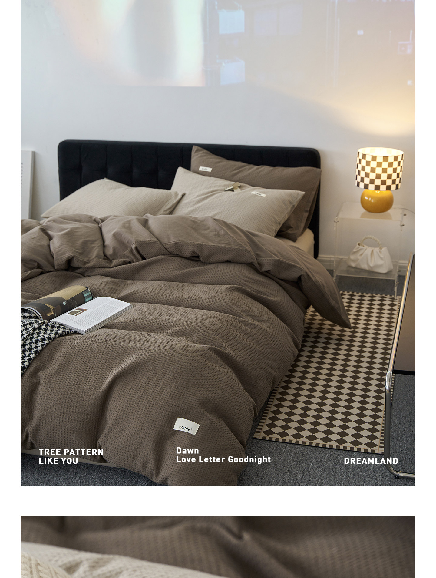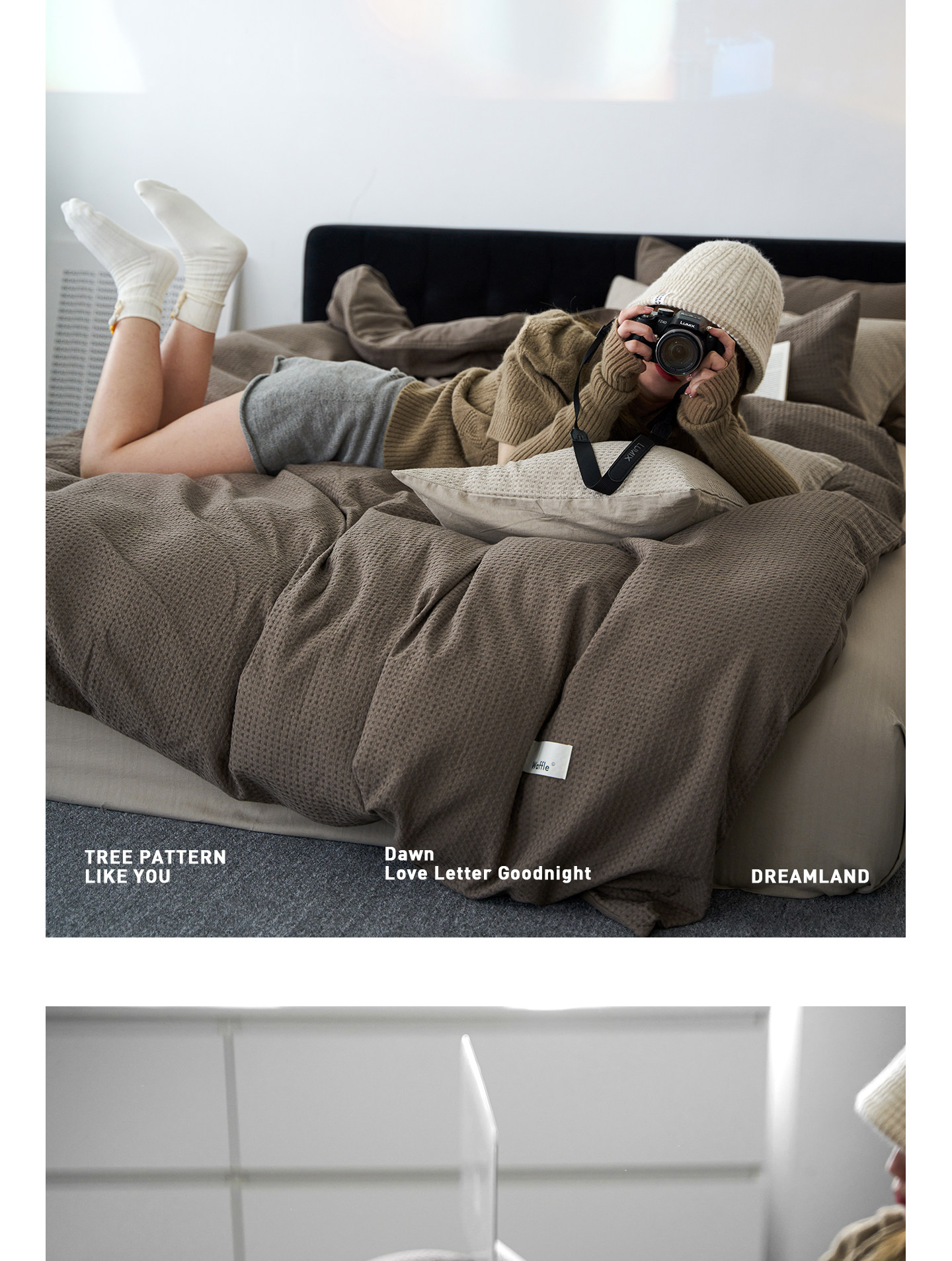 VISIONA幻想系列【柔光雾里】100%全棉华夫格四件套被套床单纯棉