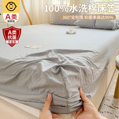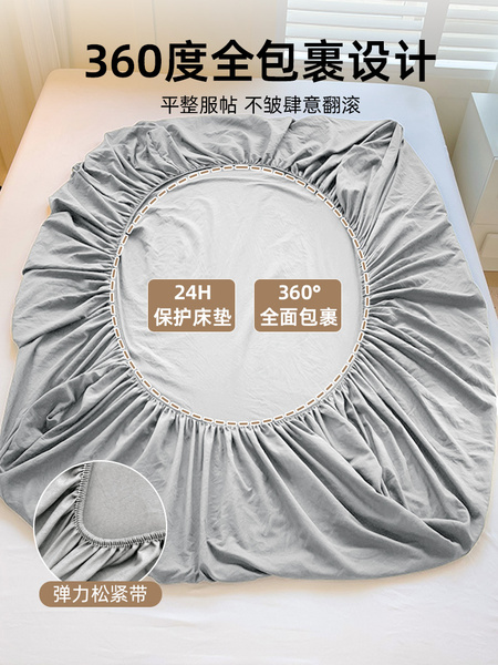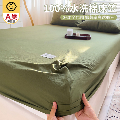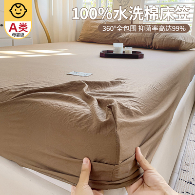 水洗棉纯色床笠单件2025新款非全棉纯棉床套席床罩梦思床垫保护套
