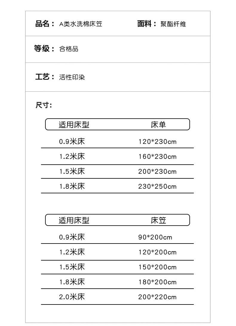 床单/床笠尺寸