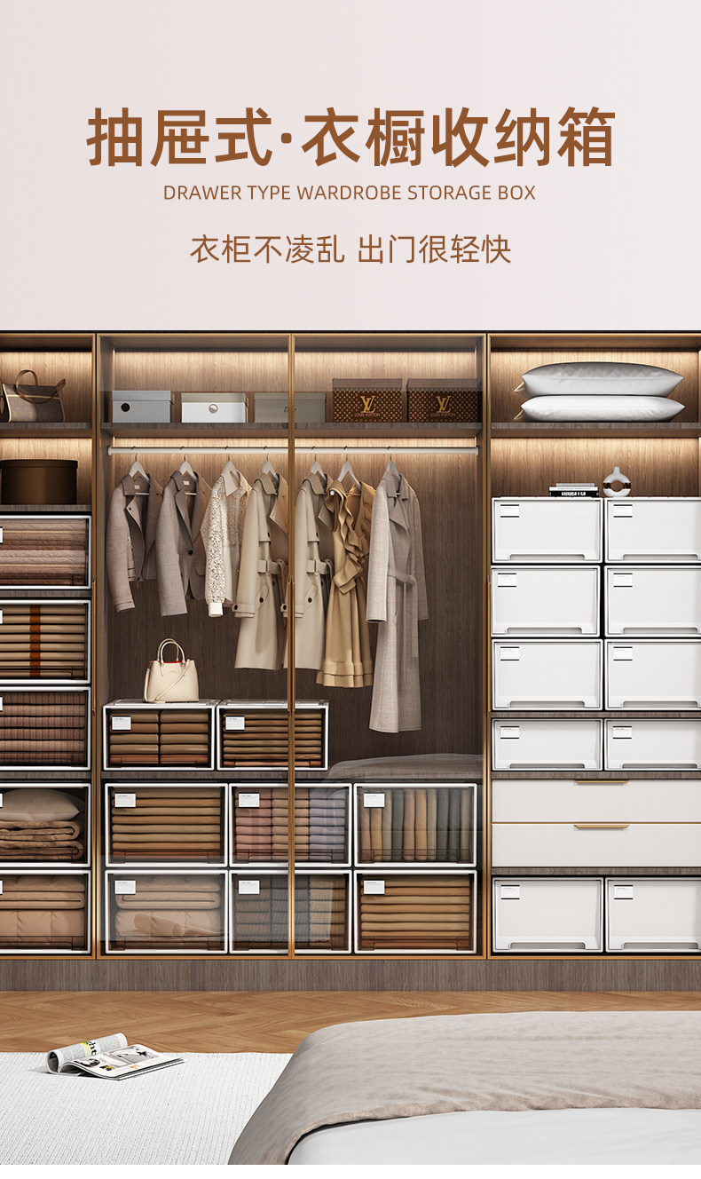 优勤收纳箱抽屉式家用衣柜储物衣服衣物整理箱裤子内衣塑料收纳盒