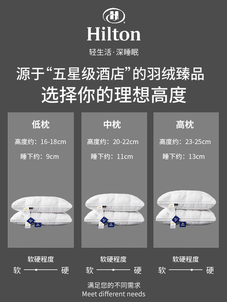 希尔顿五星级酒店羽绒枕头鹅绒枕芯学生抗菌家用护颈椎助睡眠一对