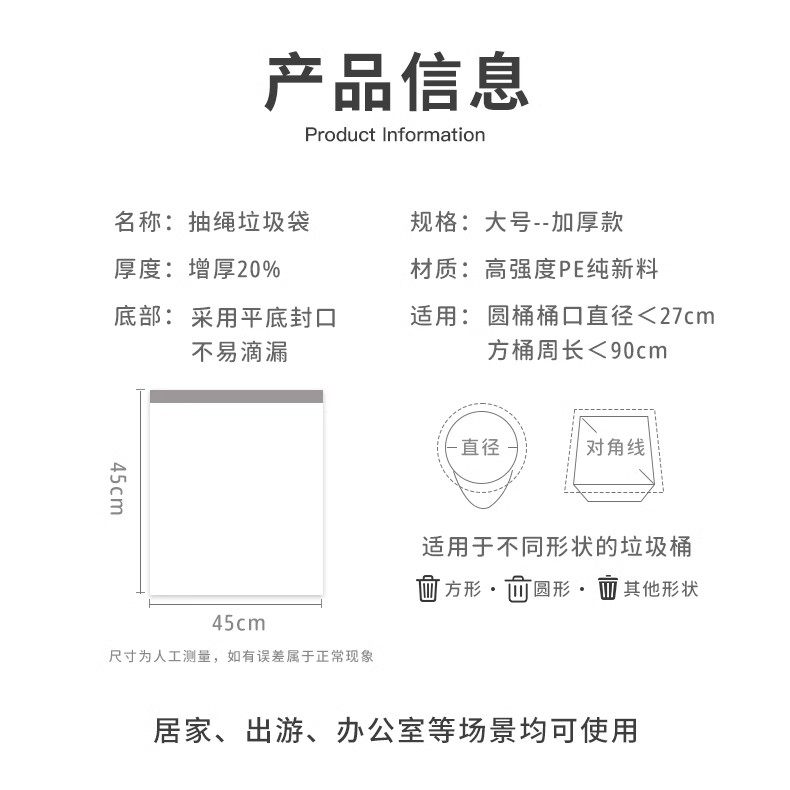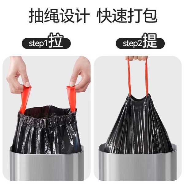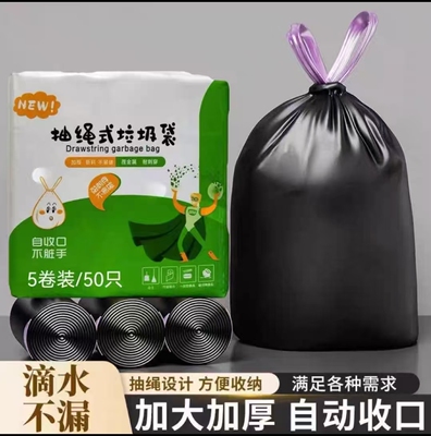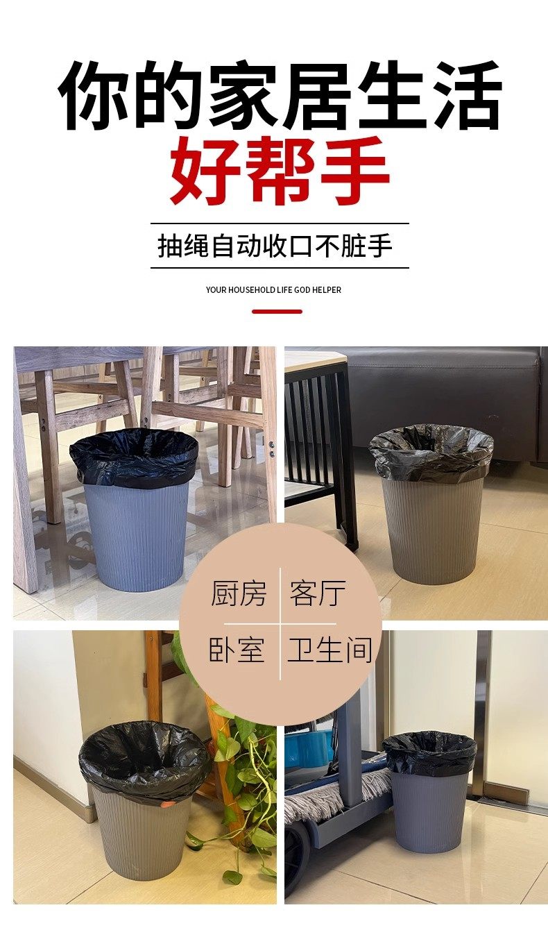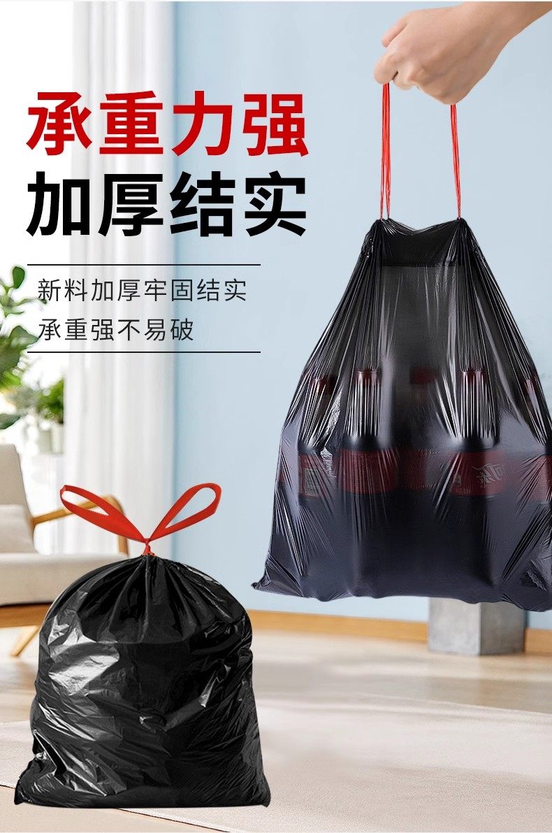 特厚手提式抽绳垃圾袋家用加厚实惠批发装厨房黑色大号垃圾袋