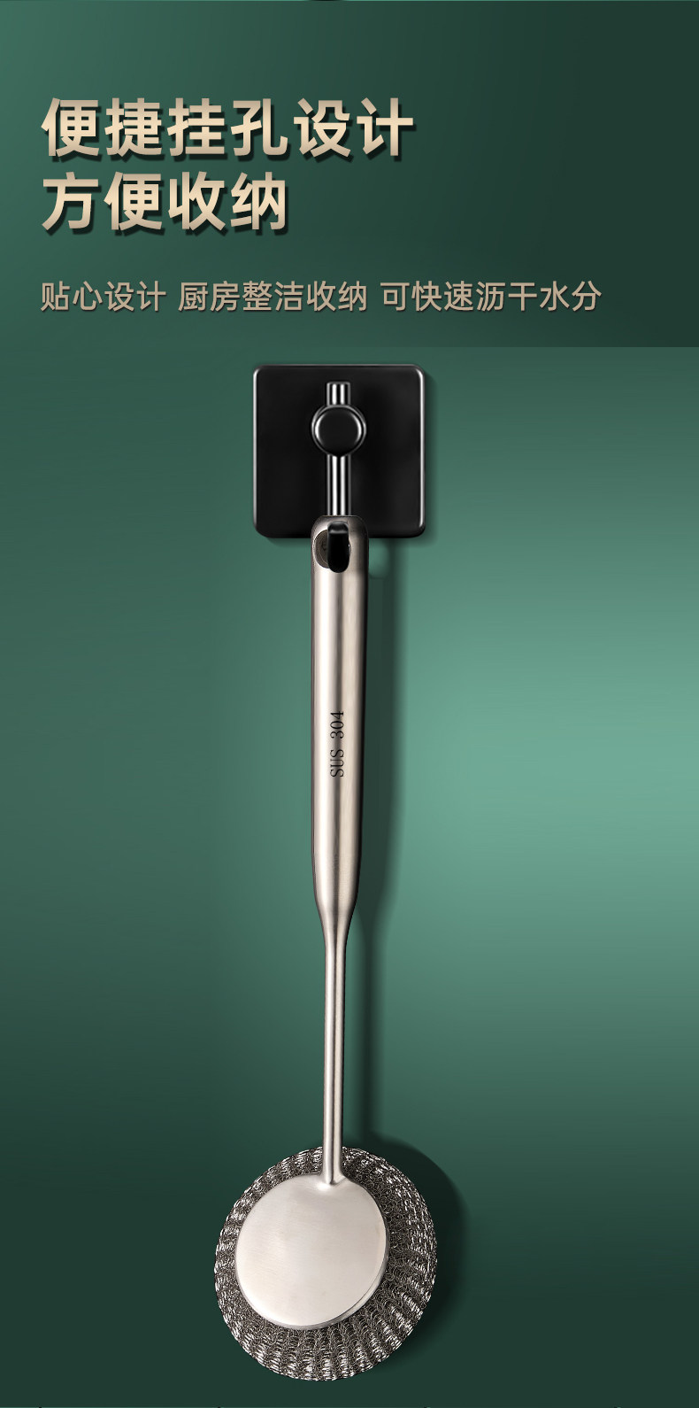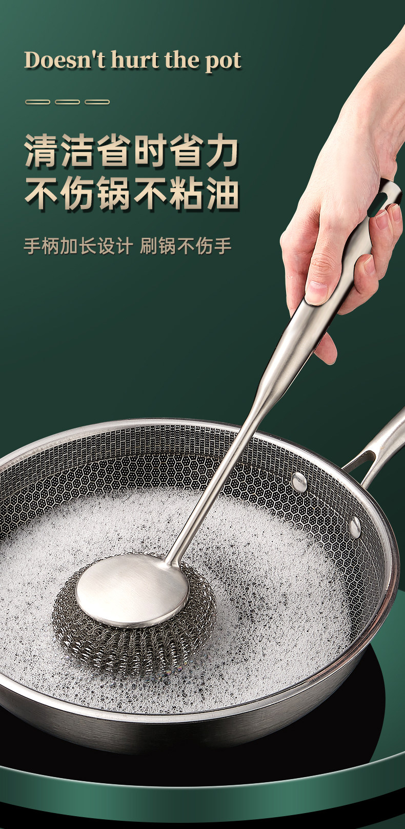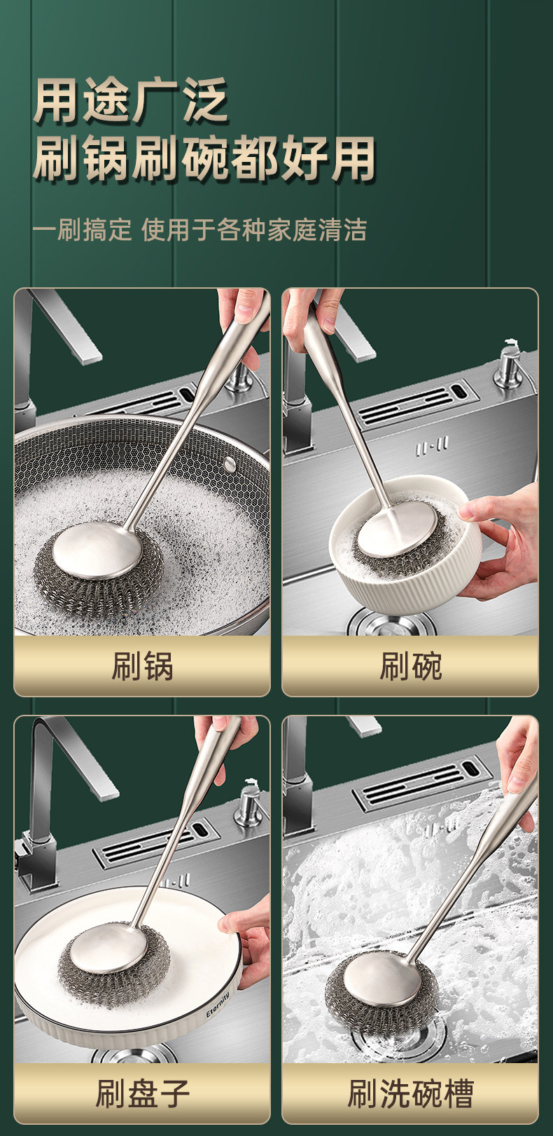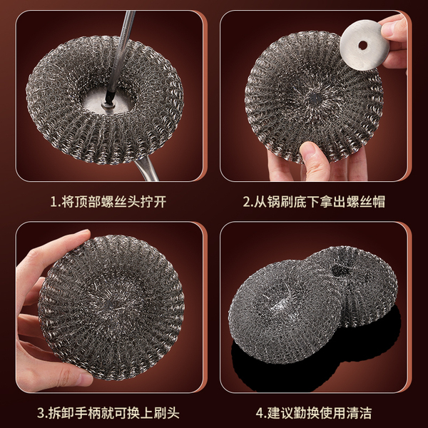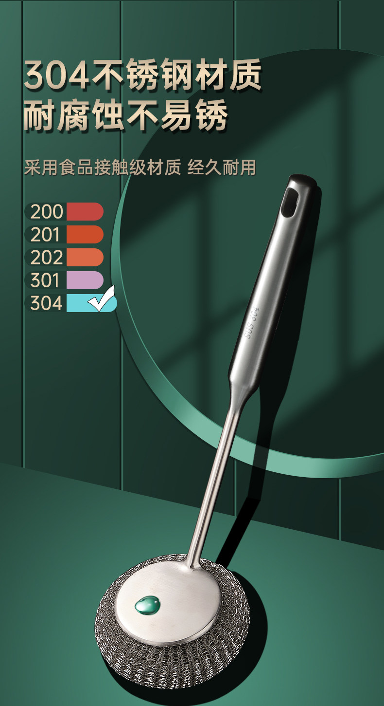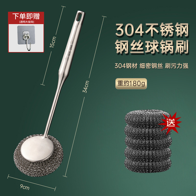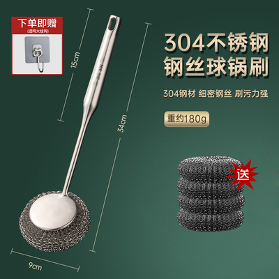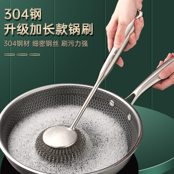 304不锈钢刷锅神器厨房专用清洁刷洗锅碗一体长柄万能钢丝球刷子