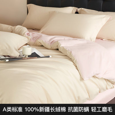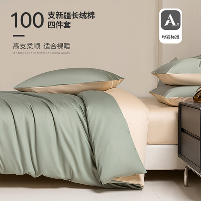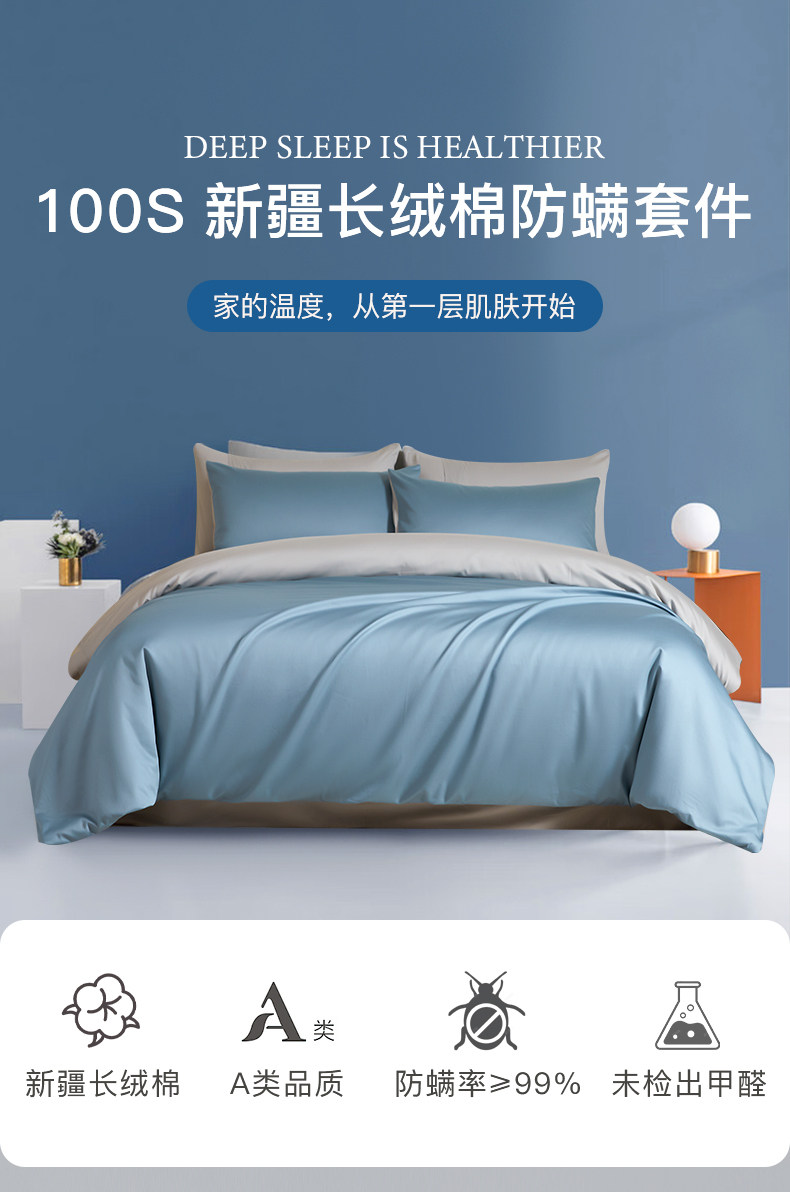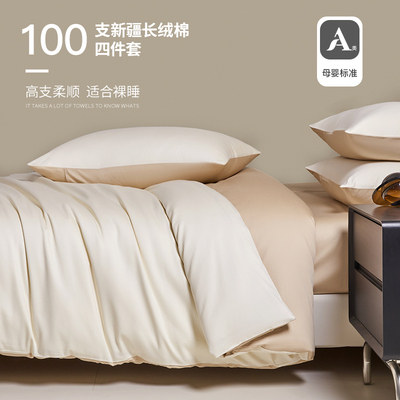 A类100支新疆长绒棉全棉防螨四件套纯棉床单笠被套床笠床上用品三