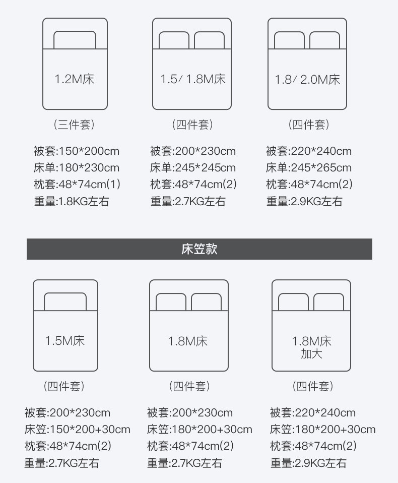 1.8m床笠款四件套【被套200*230cm/床笠180*200cm/枕套48*74cm*2】