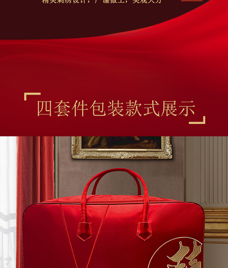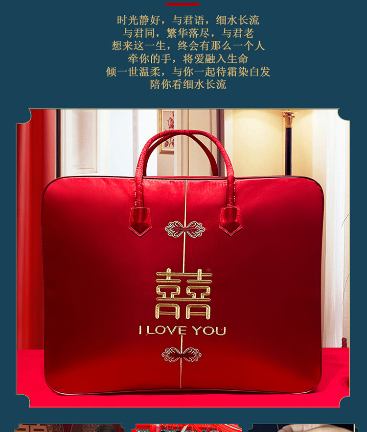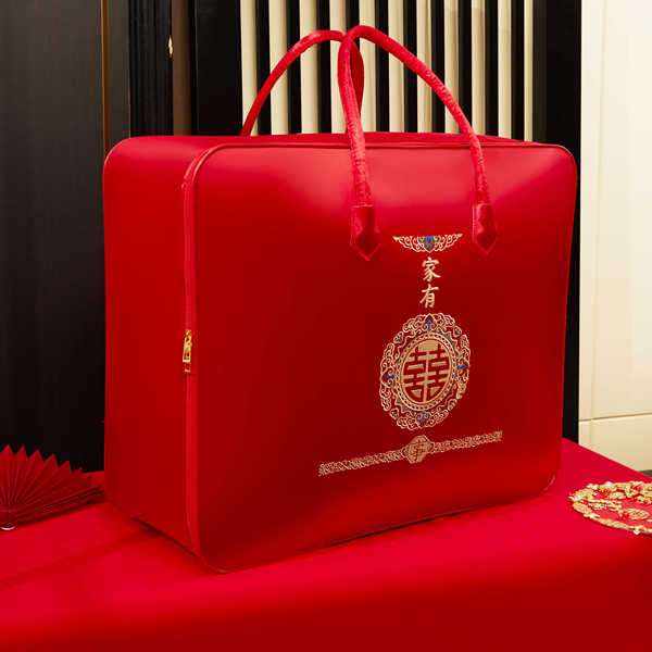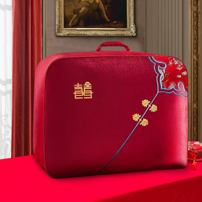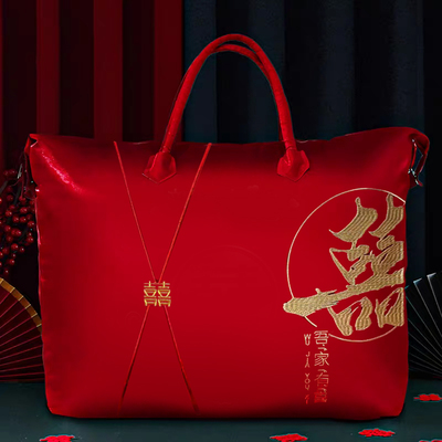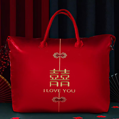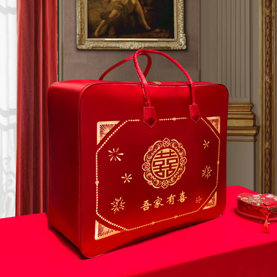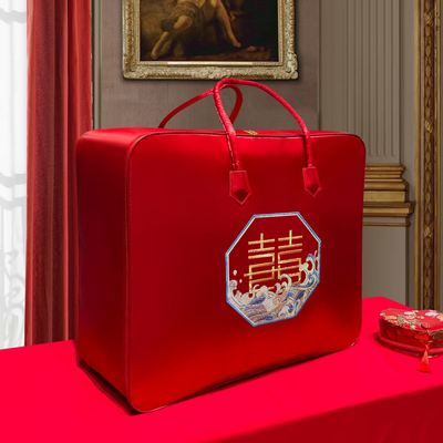 婚庆四件套红色喜被装棉被的包装袋子缎面喜庆手提结婚陪嫁收纳袋