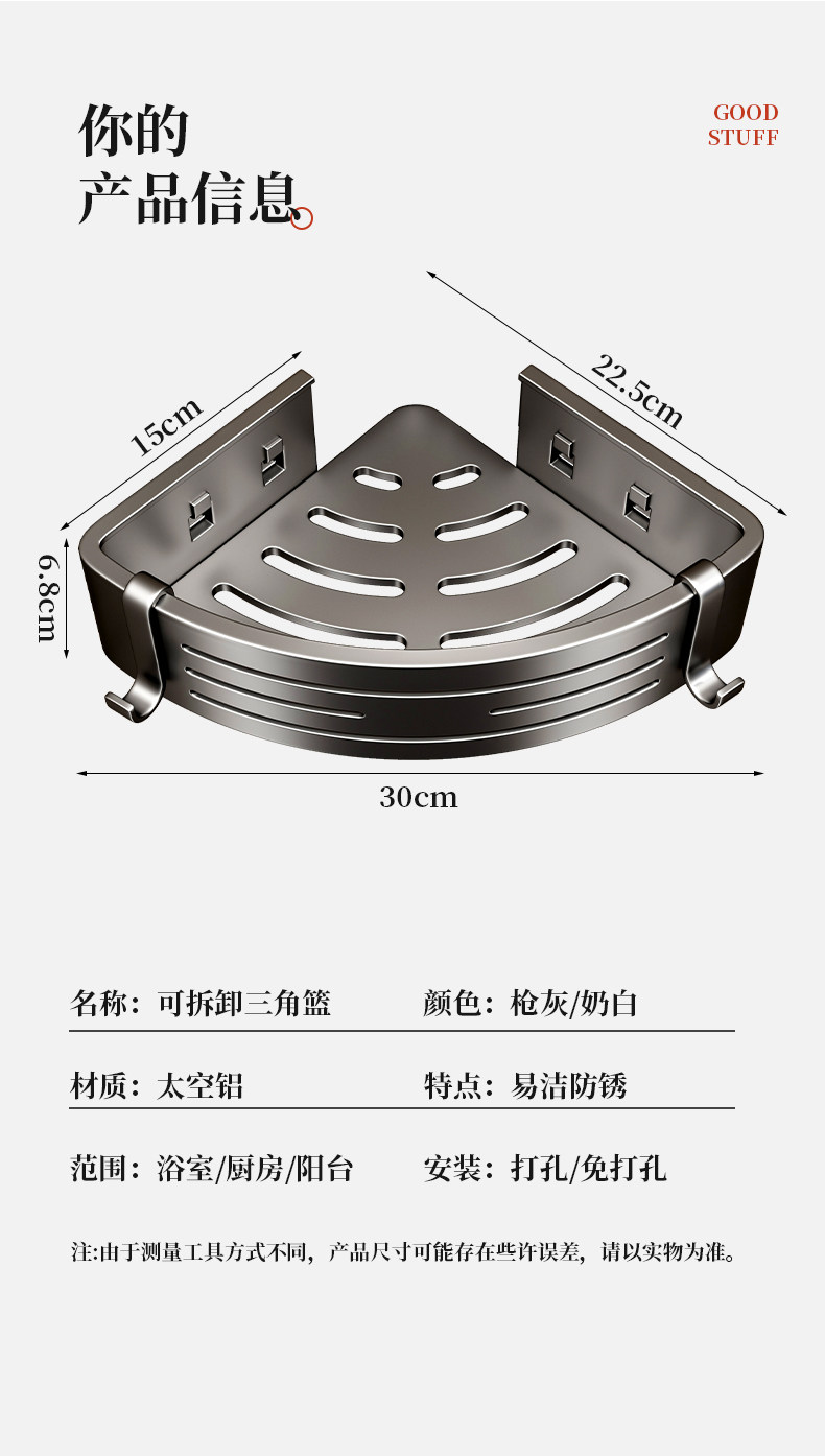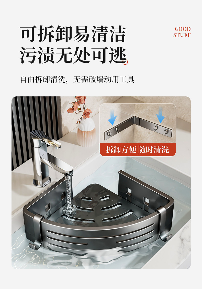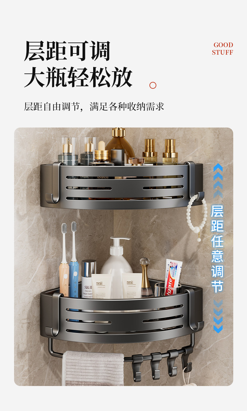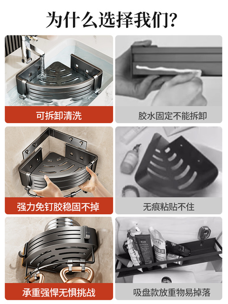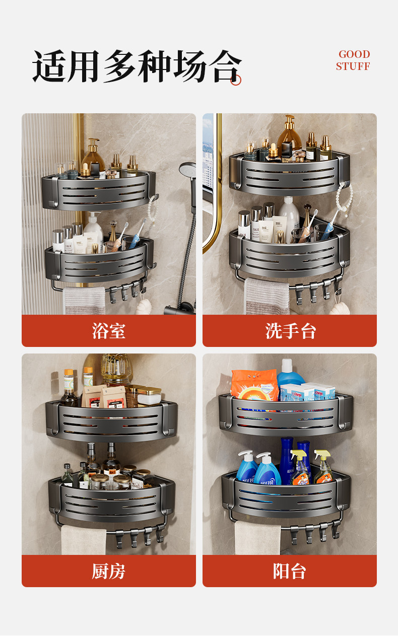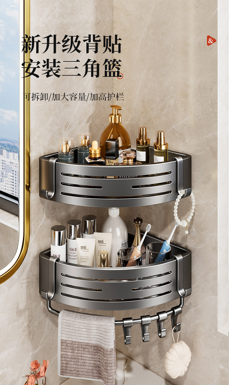 浴室置物架卫生间三角置物架专用墙角转角三角篮厕所免打孔洗手间