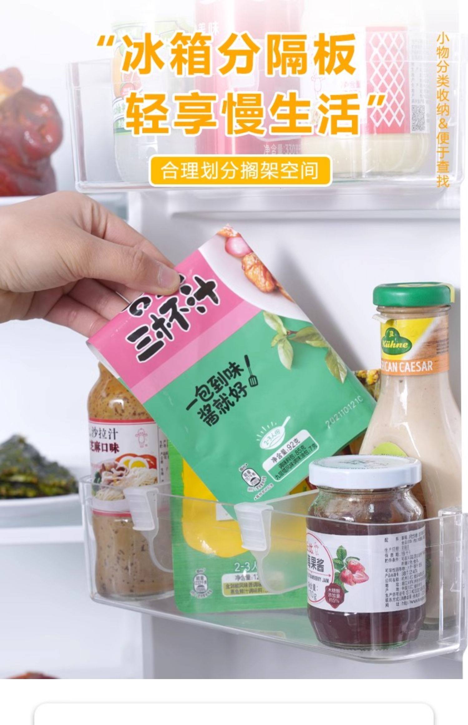 冰箱分隔板透明侧门创意整理收纳分类分格板夹子通用多功能分格片